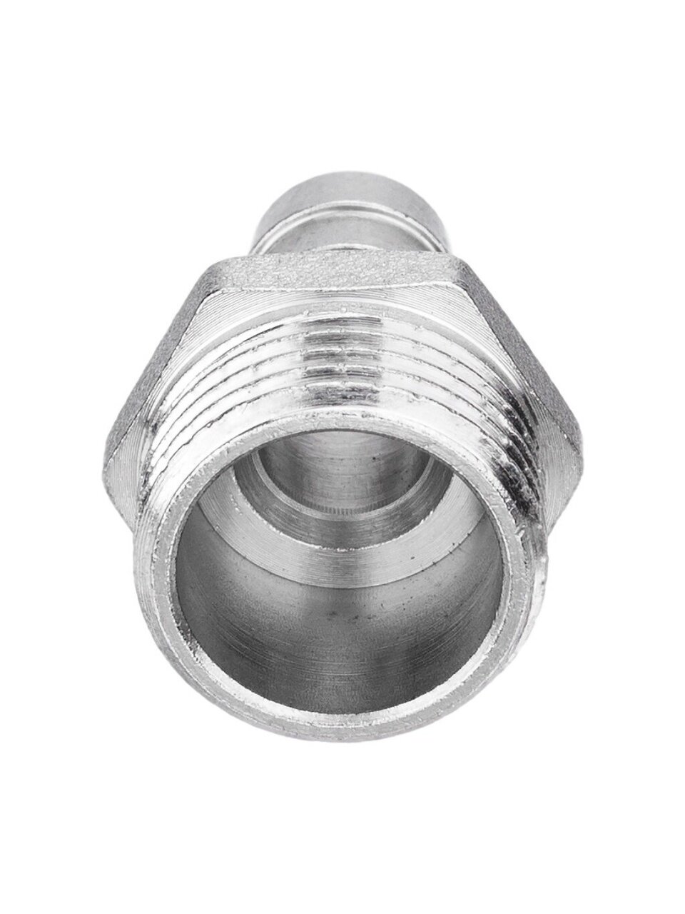 Штуцер рассчитан на подключение труб диаметром 16 мм с одной стороны и 1/2" наружной резьбой с другой. Это стандарт для большинства бытовых и дачных систем.