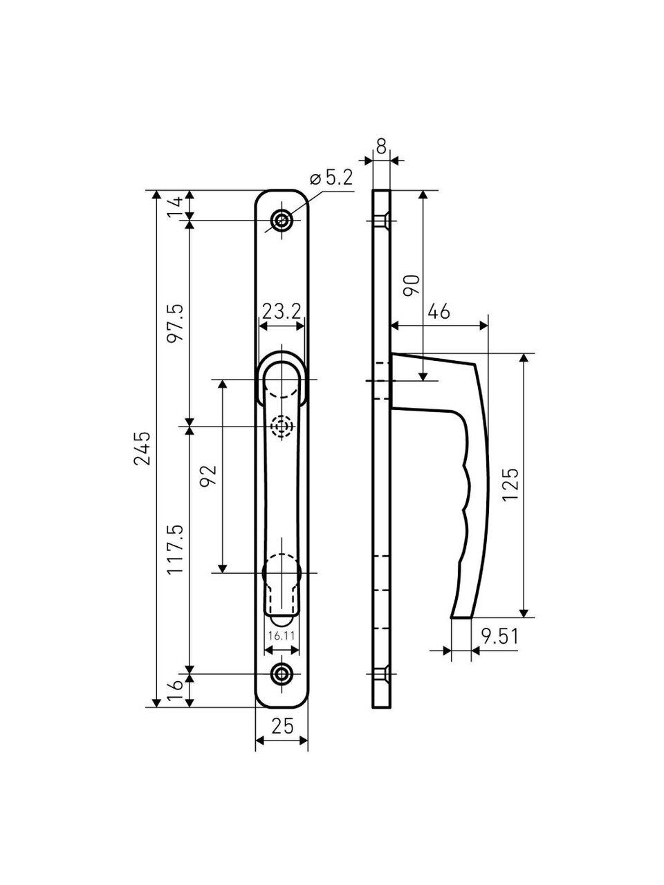 - Ручка оснащена пружинным механизмом, который усиливает возвратный эффект откидного механизма замка-рейки, предотвращая провисание ручки и обеспечивая дополнительный уровень безопасности.