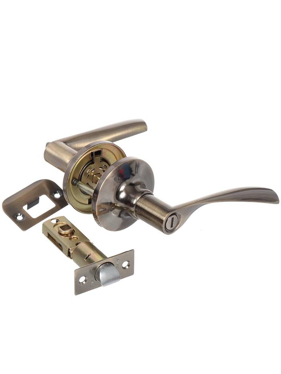 При повороте рычага происходит блокировка не самой защелки, а только ручки, это позволяет открыть замок ключом, не прибегая к демонтажу кнобы.