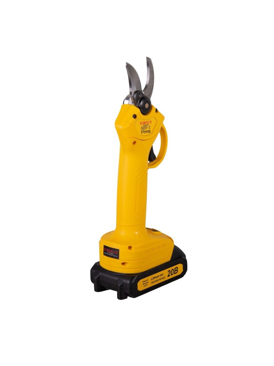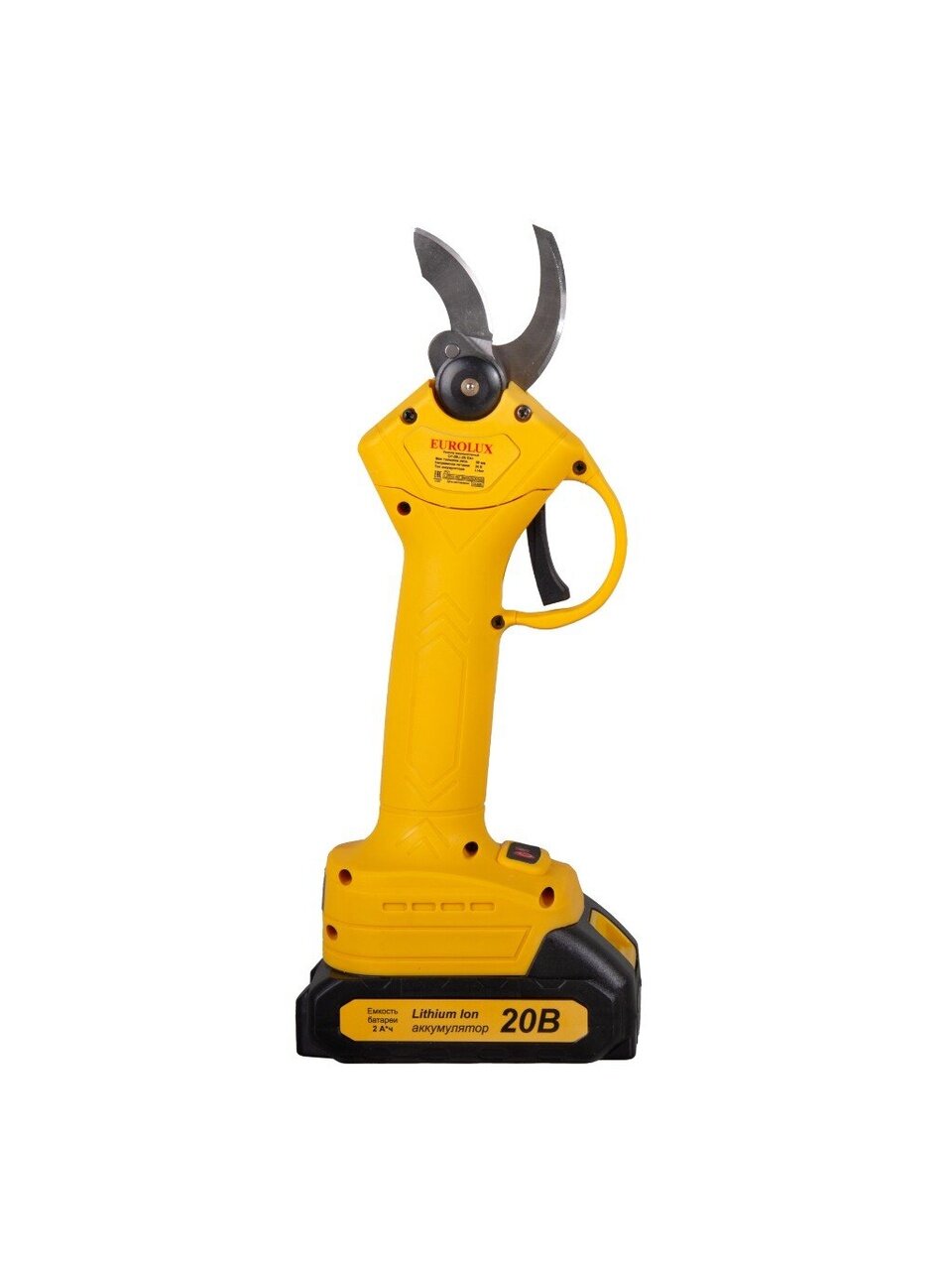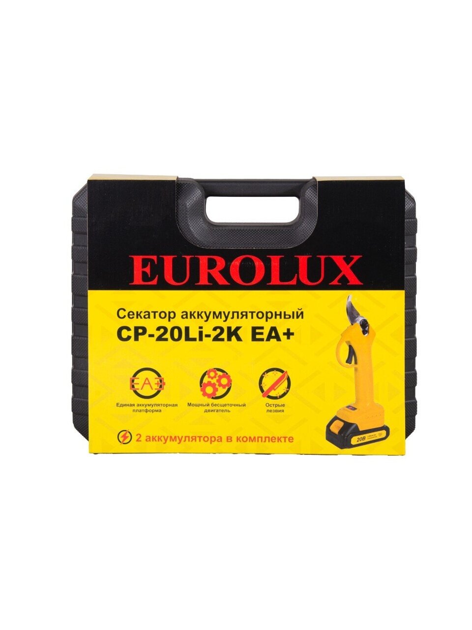 Вы можете приобрести «Секатор Eurolux, CP-20Li-2K EA, аккумуляторный, 20 В, бесщеточный, 2 АКБ и ЗУ, 70/13/140» и другие товары в нашем интернет-магазине в Коврове по низким ценам и с бесплатным самовывозом.