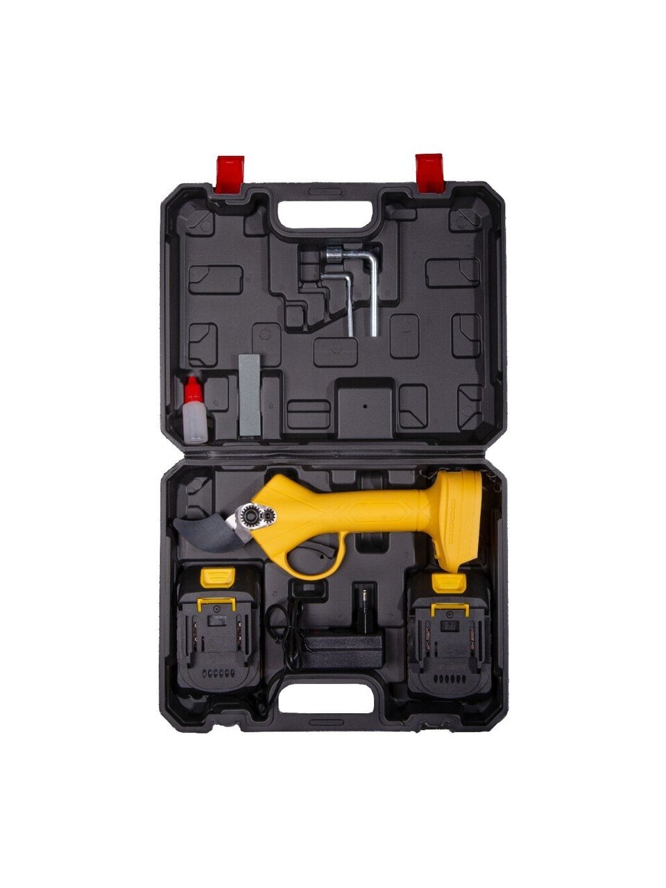 Секатор Eurolux — отличное решение для тех, кто ценит время и комфорт в работе на участке. Благодаря аккумуляторному питанию отсутствует необходимость в проводах и розетках, что обеспечивает мобильность и свободу передвижения по всему саду. Наличие двух аккумуляторов позволяет работать дольше, не отвлекаясь на подзарядку, а бесщеточный двигатель обеспечивает оптимальную производительность и экономичное энергопотребление.