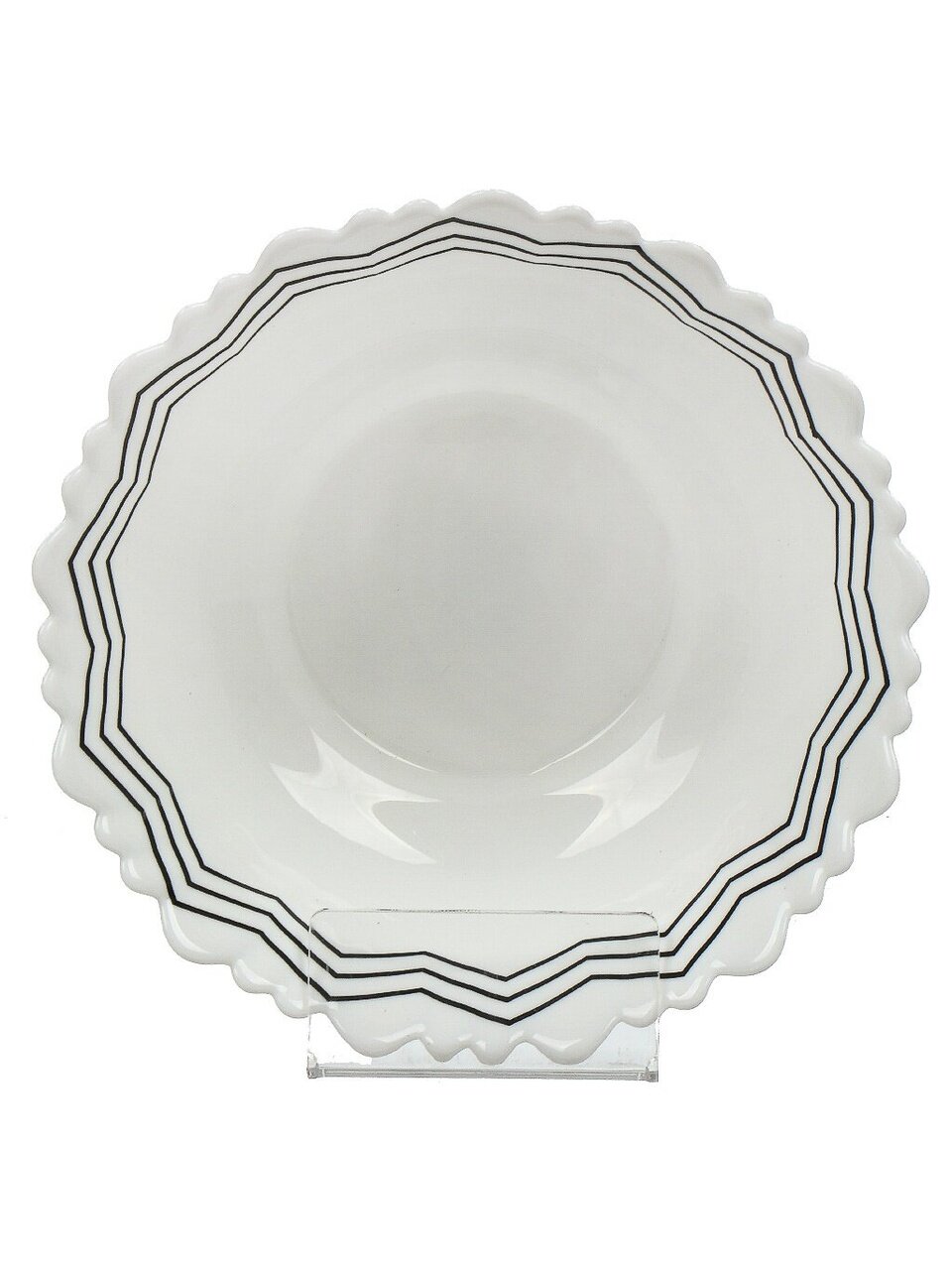 Круглый салатник диаметром 23 см и высотой 9 см, объемом 2 литра, без крышки и металлической подставки, выполнен в скандинавском стиле с рисунком.