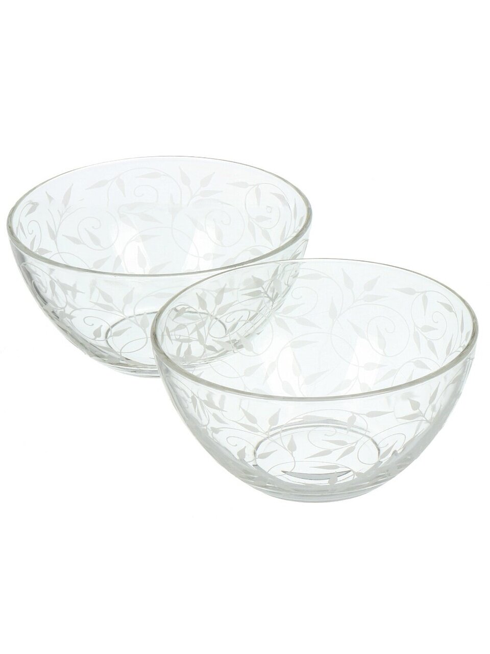 Салатники Glasstar Весна: 2 стильные круглые миски из стекла 16 см для сервировки и хранения. Лёгкий уход, подходит для СВЧ и посудомоечной машины.