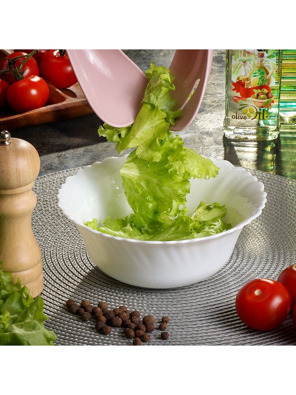 Да, этот салатник можно мыть в посудомоечной машине — стеклокерамика устойчива к частому мытью и не теряет белизну.