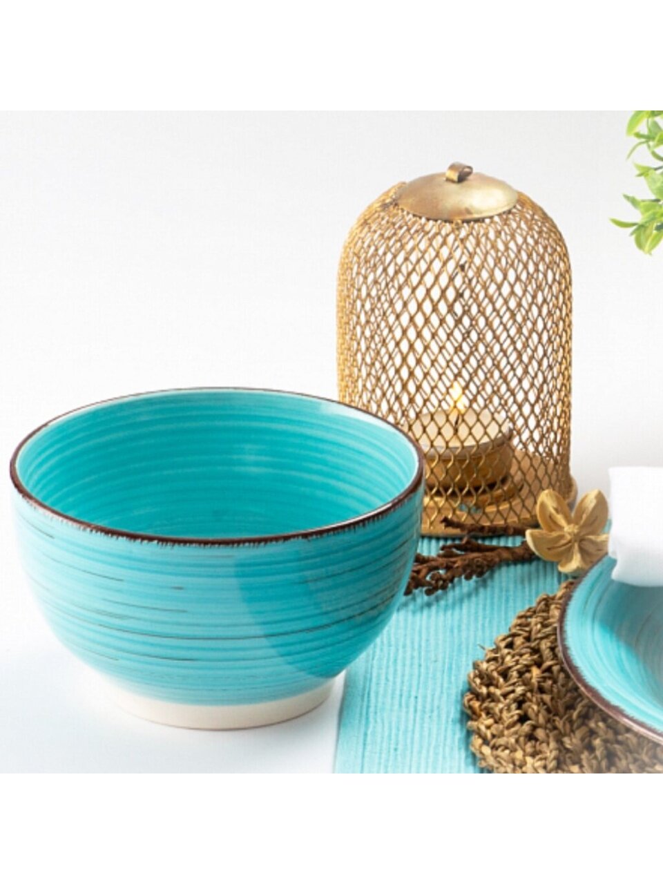 - Уникальный дизайн Laguna — голубой салатник с полосатым рисунком станет акцентом на столе