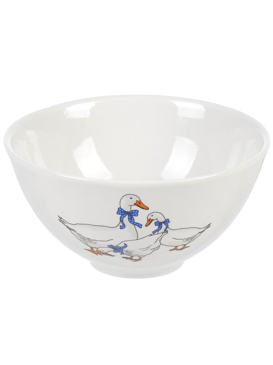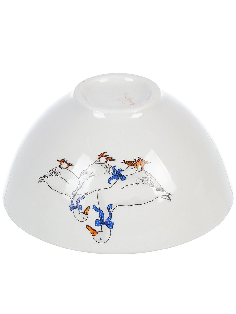Миска фарфор, круглая, 0.55 л: универсальный выбор для кухни и дачи — долговечный фарфор, стиль «Гуси новые» от Дулевского завода. Подходит для СВЧ и посудомоечной машины.