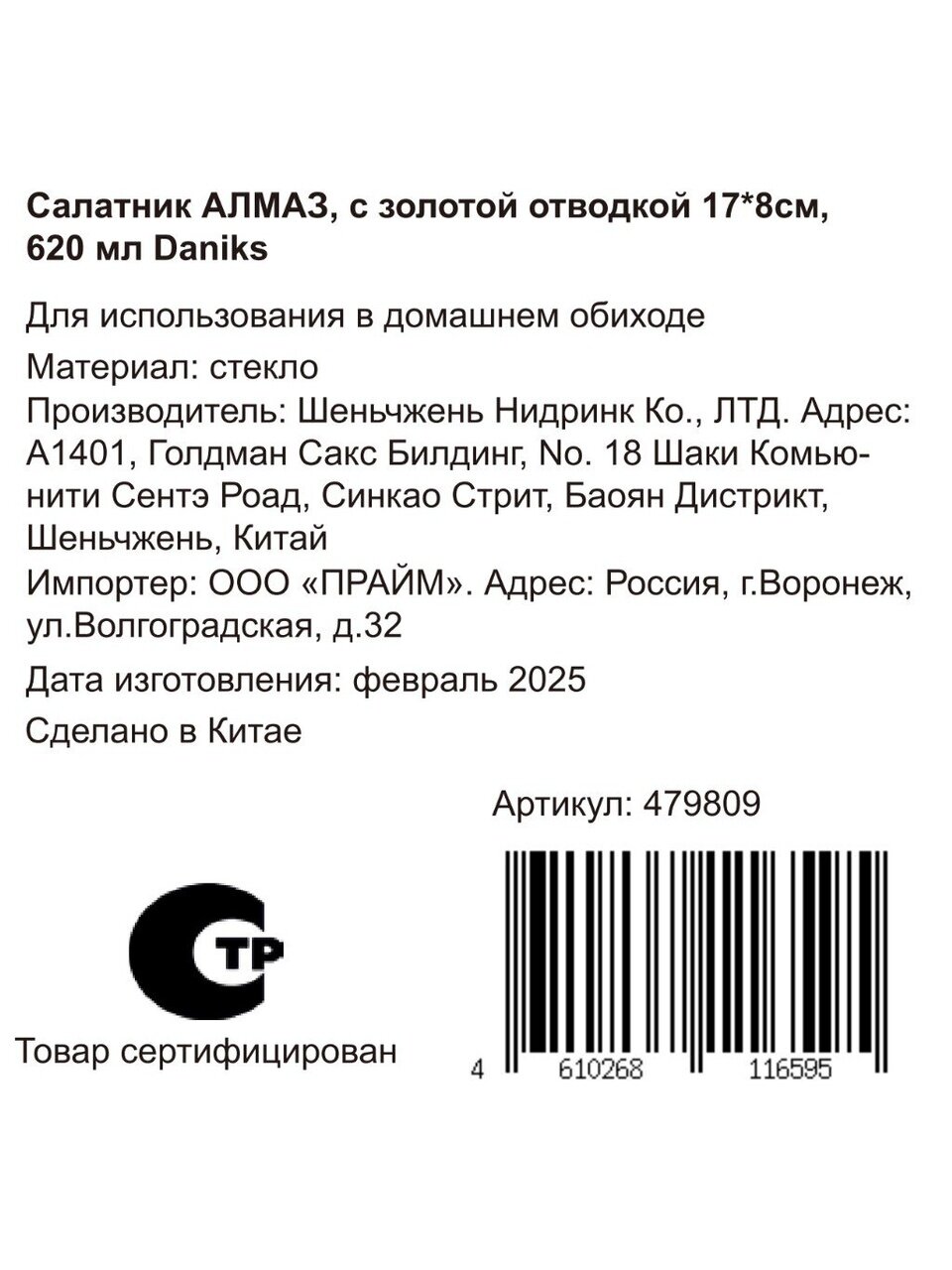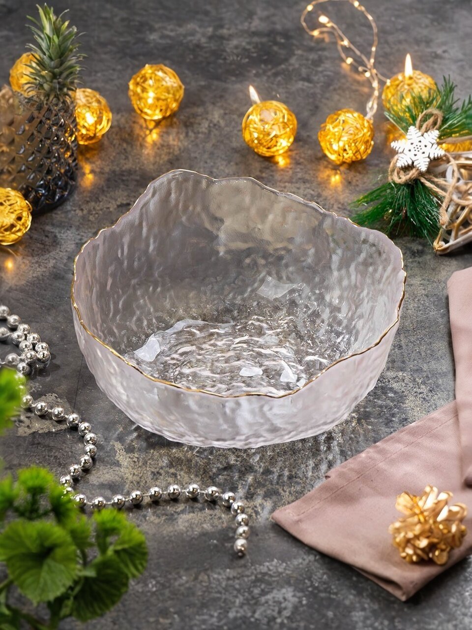 Салатник стеклянный Daniks «Алмаз» 0,62 л с золотой окантовкой — стиль для вашего стола, идеальный размер для сервировки и подарка, выгодная цена.