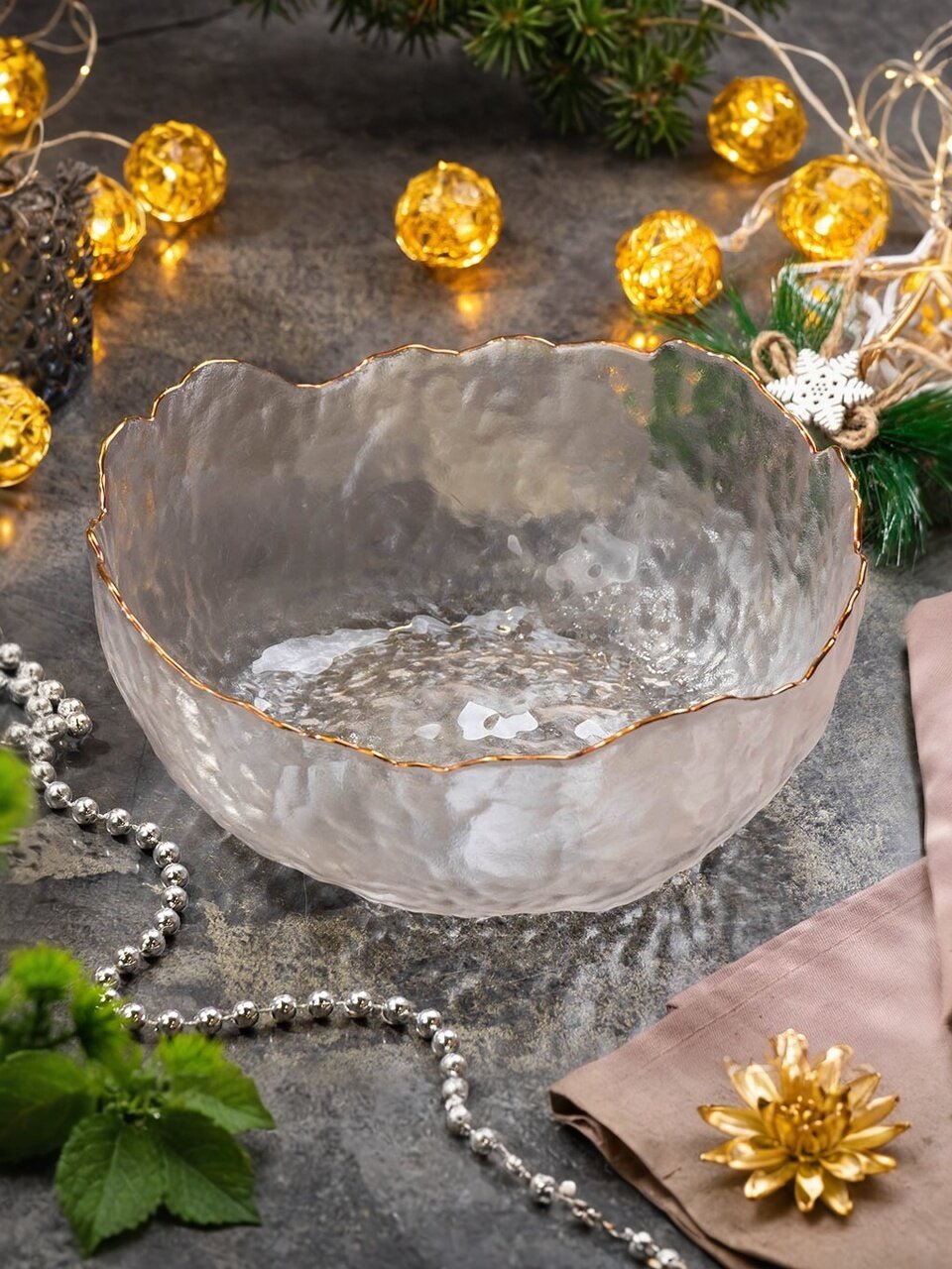 Стекло не впитывает запахи, легко очищается, выглядит презентабельно. Золотая окантовка делает салатник уместным для праздничной сервировки и отличным вариантом для подарка.