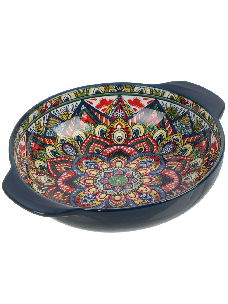 - Уникальный восточный рисунок и глубокий синий цвет — выделяется среди классических салатников