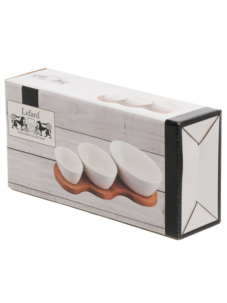 Элегантный набор салатников Lefard Native: 3 размера, фарфор, деревянная подставка — идеальный подарок и стиль для кухни по выгодной цене