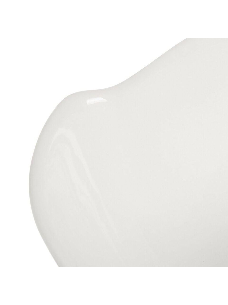 Диаметр 15 см, высота 6 см, объём 0.4 литра, материал — фарфор, форма фигурная, цвет белый, без крышки и подставки.
