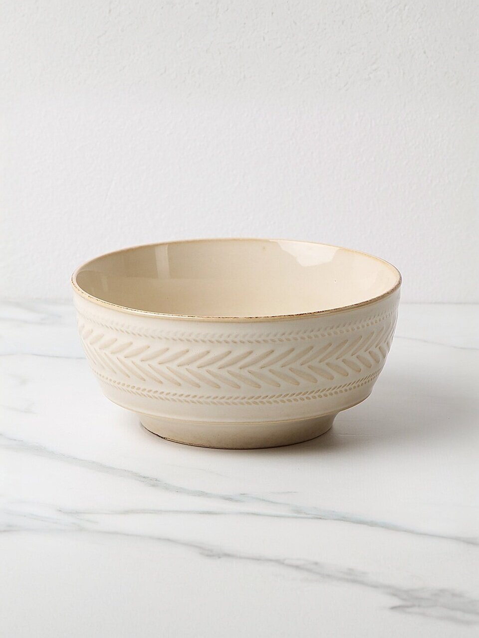 Керамика устойчива к царапинам, не впитывает запахи, сохраняет свежесть блюд и подходит для горячих и холодных закусок. Рельефный дизайн и бежевый цвет делают салатник универсальным для любого стола.