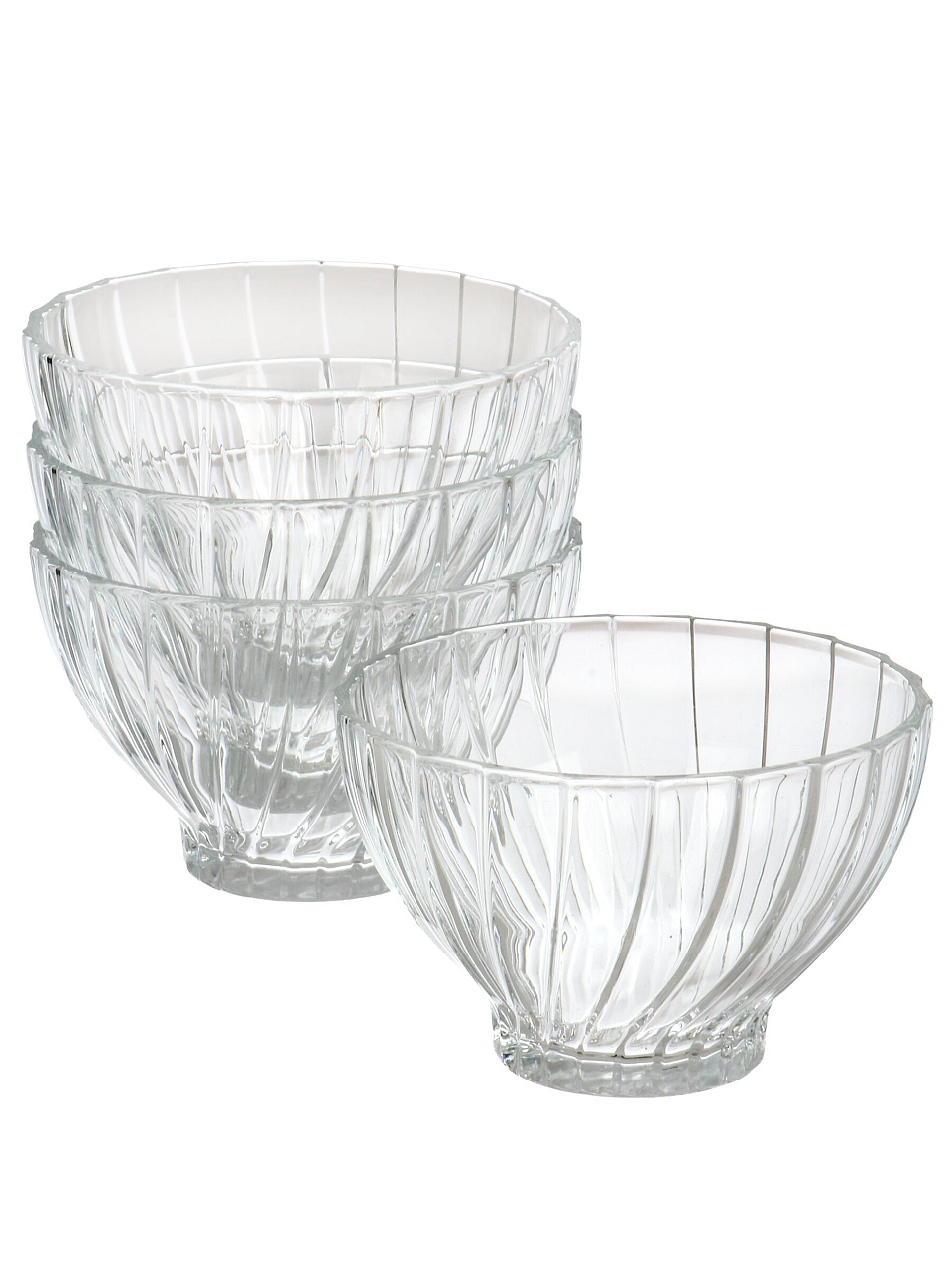 Набор салатников Pasabahce "Букет" — 4 стильные круглые чаши из рельефного стекла по 0,29 л. Идеально для сервировки, подарка и ежедневного использования.