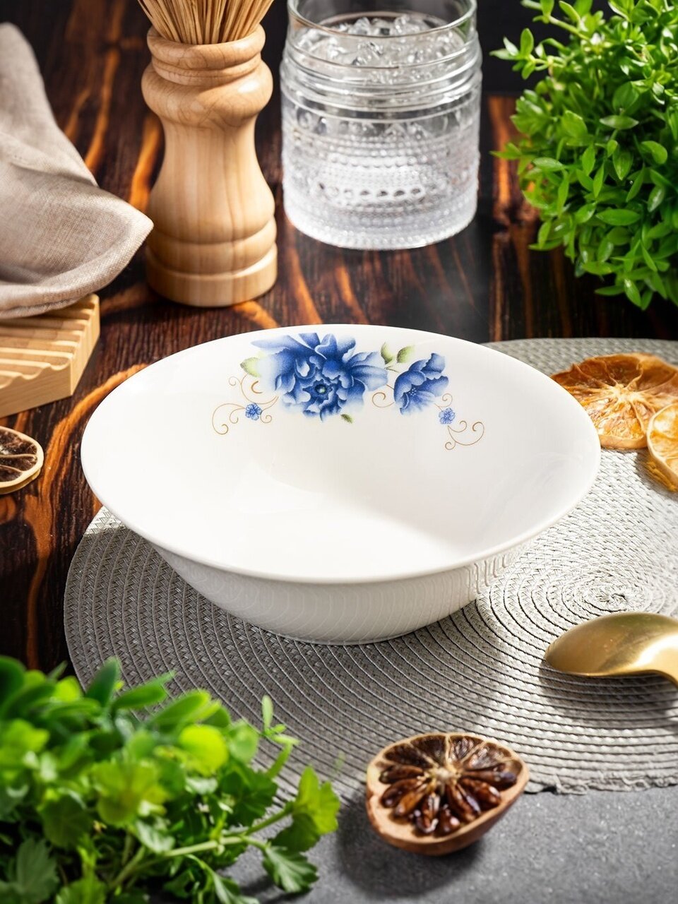 - Оптимальный объём 0.6 л и диаметр 18 см — удобно для салатов, закусок, гарниров; подходит для СВЧ и посудомоечной машины