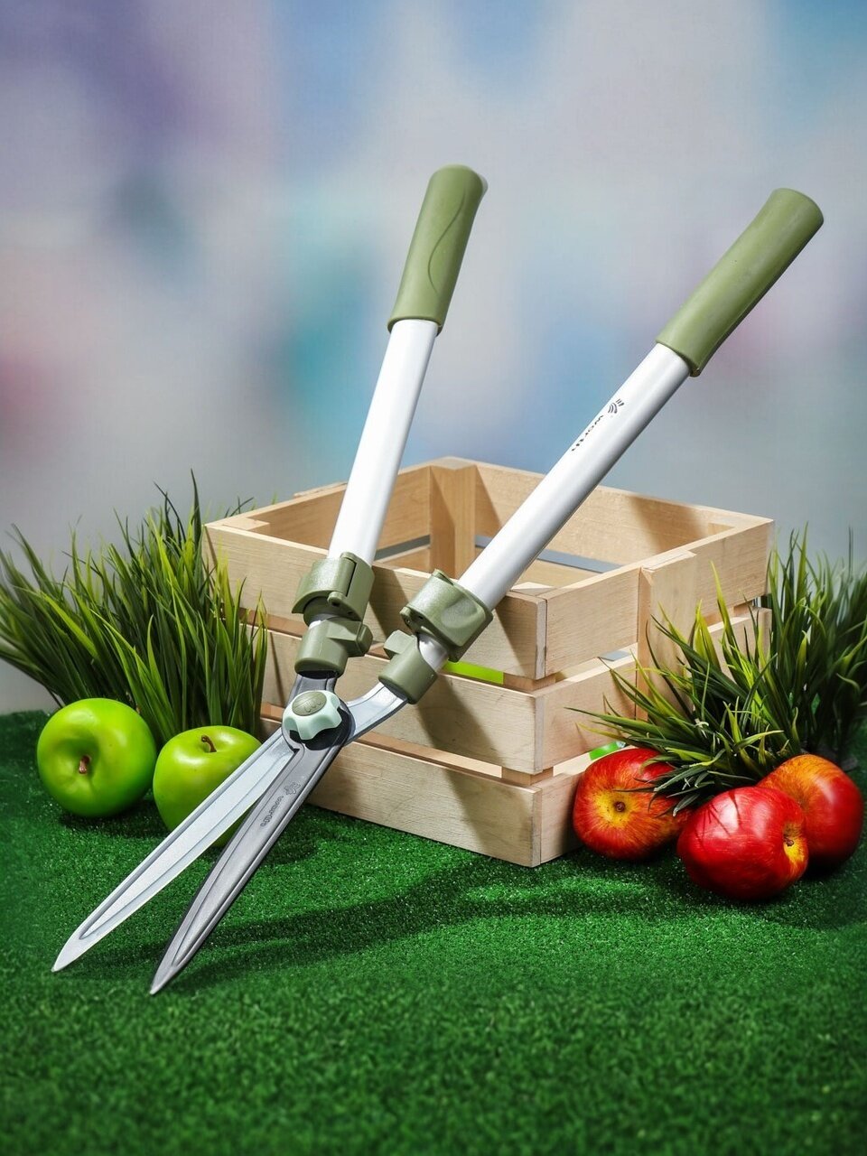 Ножницы предназначены для поддержания формы живой изгороди или других элементов ландшафтного дизайна из кустарников и деревьев.