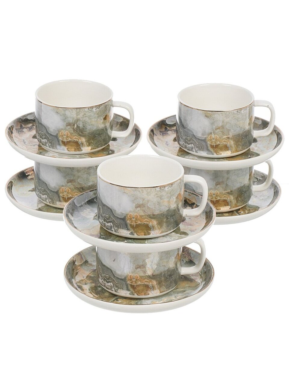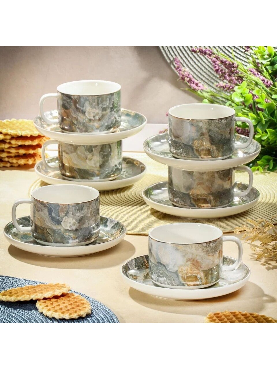 Чайный набор из керамики на 6 персон (12 предметов, 220 мл, Серый Мрамор, подарочная упаковка): стильный подарок и уют для дома — выгодно купить с доставкой.