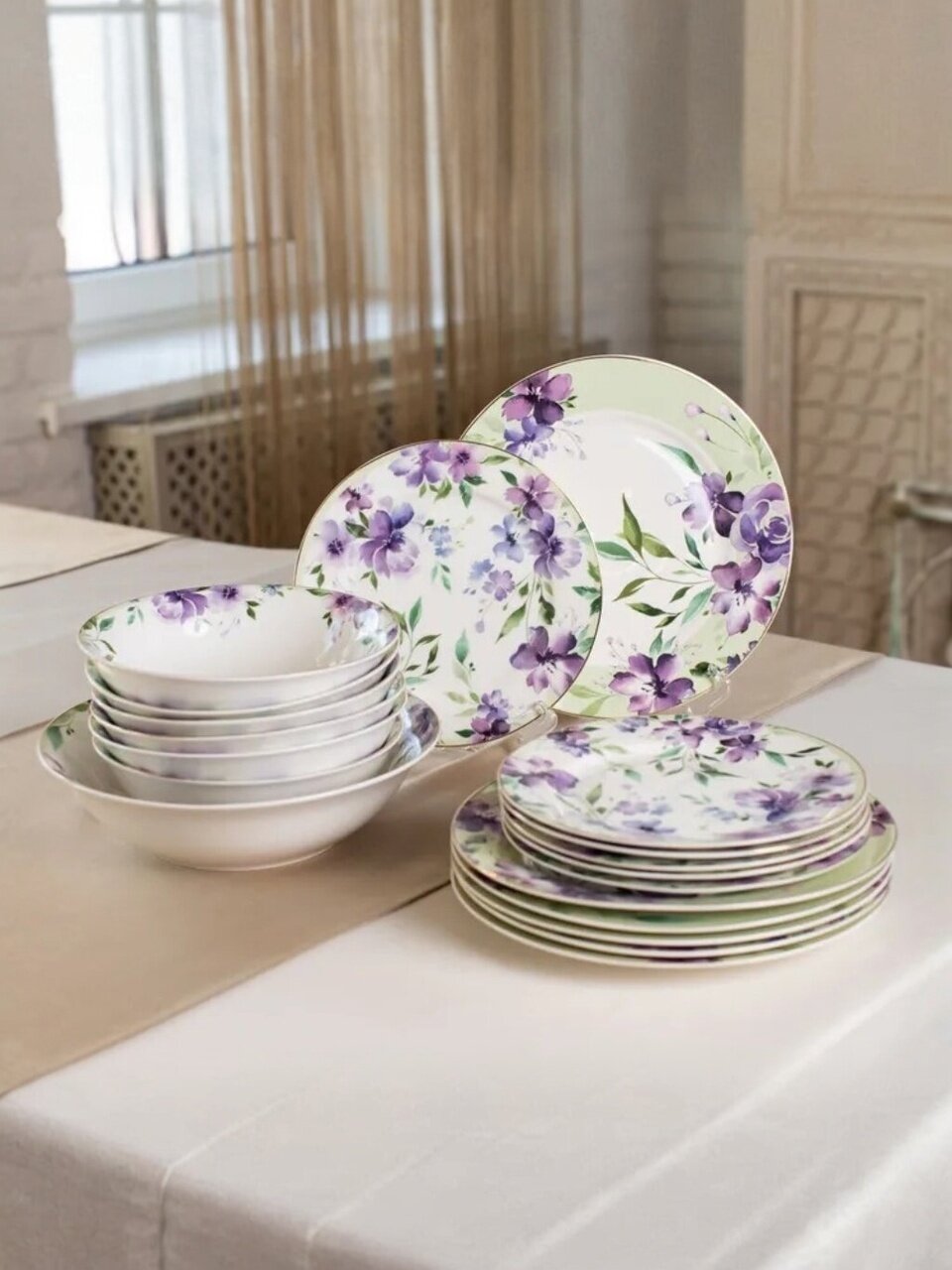 - Надёжный материал: сервиз изготовлен из прочного фарфора, рассчитан на долгий срок службы и ежедневное использование.