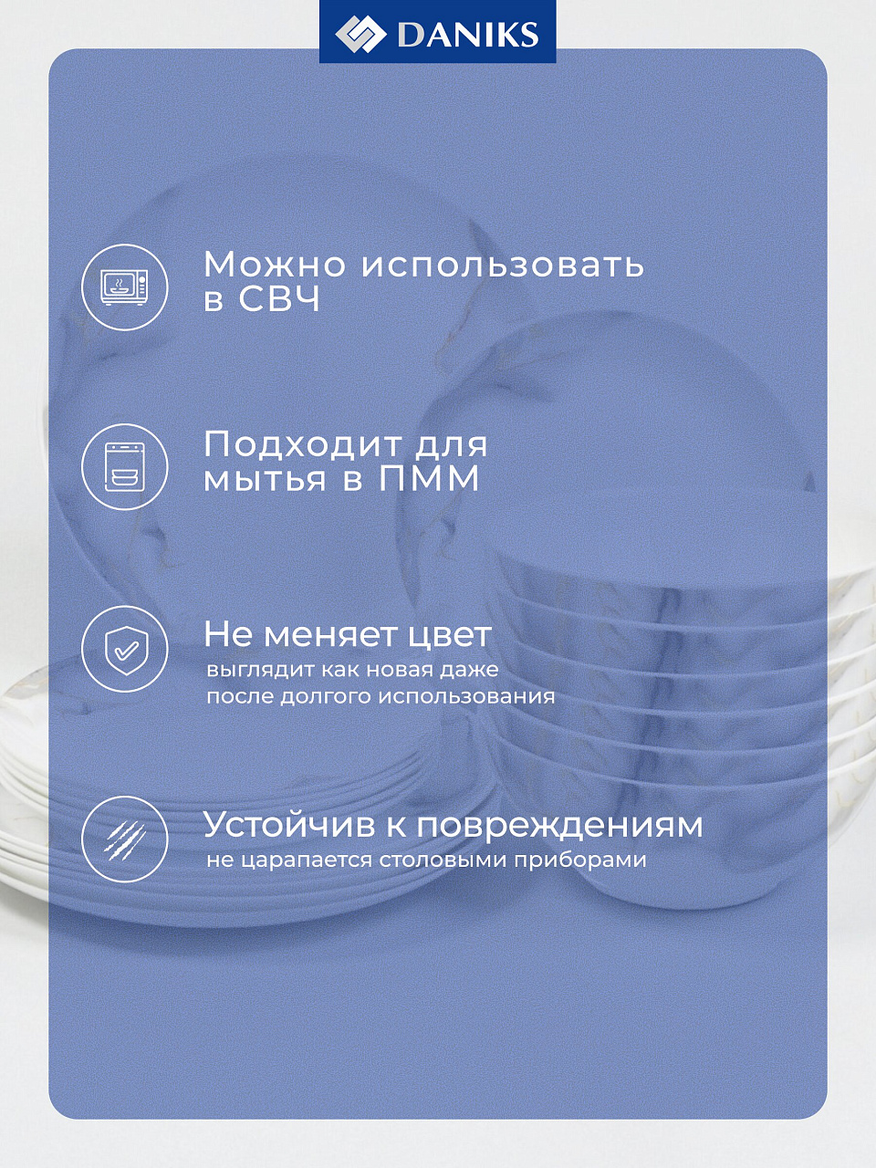 Столовый сервиз Daniks Флюид на 6 персон: стильная стеклокерамика, 18 предметов для уютных семейных ужинов и праздничных встреч. Легко мыть, подходит для СВЧ, идеален для дома и дачи.
