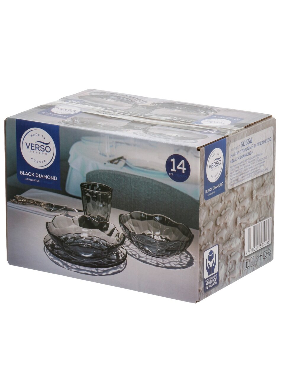 Столовый сервиз Black Diamond на 6 персон — 14 предметов из стильного стекла для дома и подарка. Эффектный дизайн, долговечность, выгодная цена.
