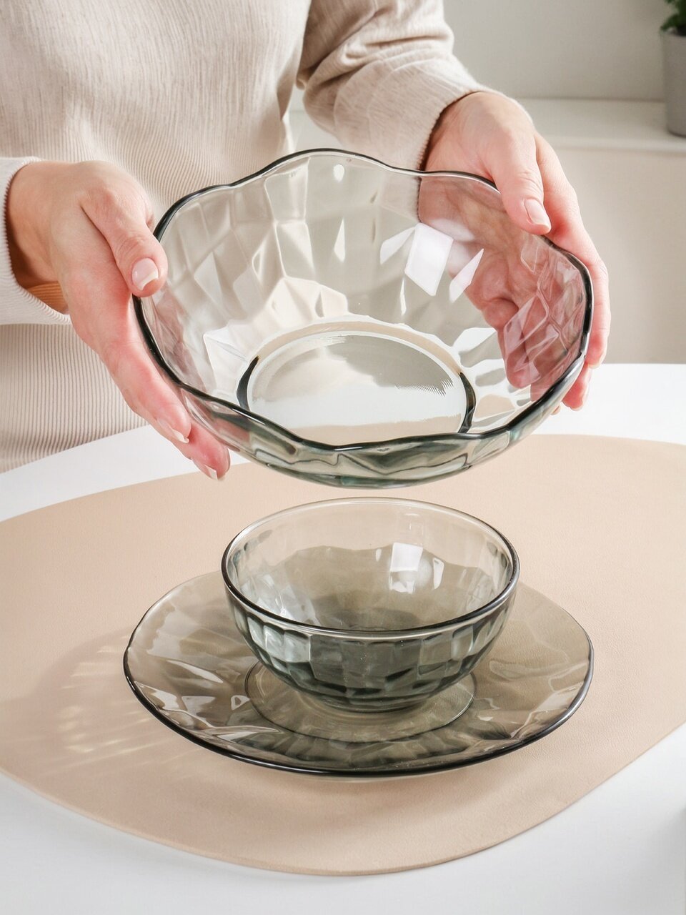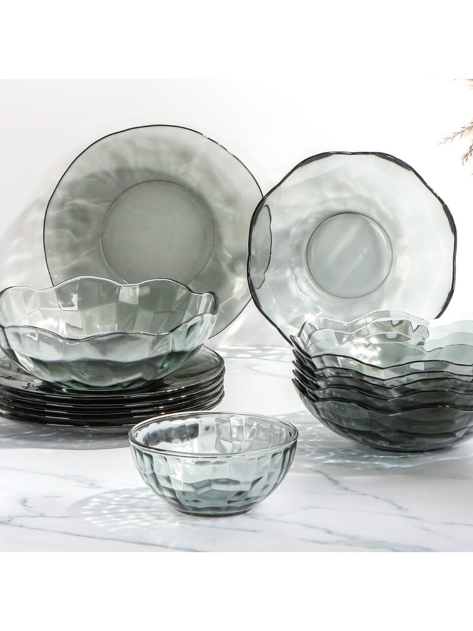 Столовый сервиз из стекла Black Diamond — это стильное решение для сервировки на 6 персон. Благодаря современному серому оттенку и лаконичным формам, сервиз гармонично впишется в любой интерьер: от классики до минимализма. Если вы ищете, какой столовый сервиз лучше выбрать для подарка или семейного использования, обратите внимание на Black Diamond — он поставляется в подарочной упаковке и выглядит дорого.
