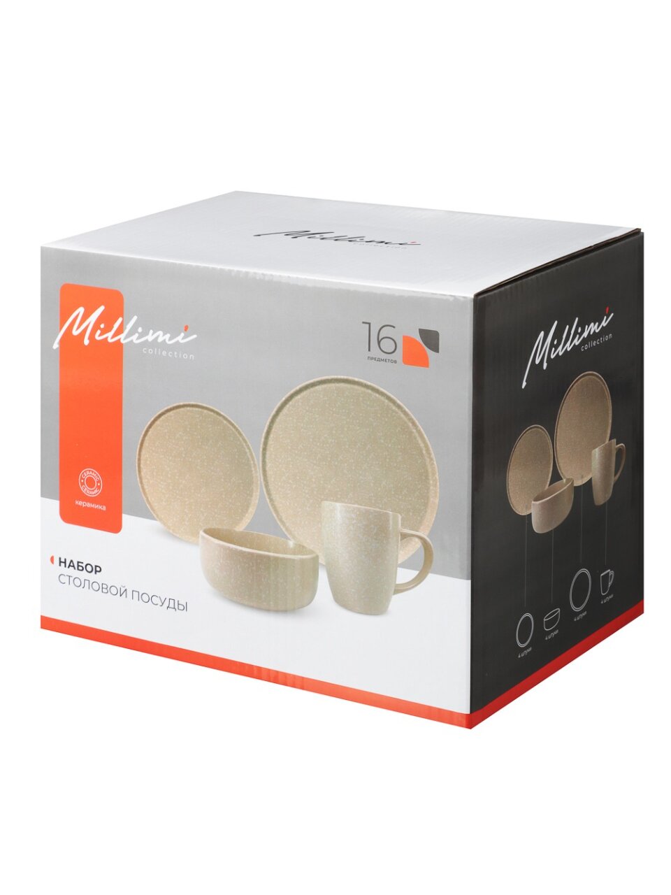 Столовый сервиз Millimi 824-179 на 4 персоны: 16 предметов из керамики для уютных семейных ужинов и стильных подарков. Подходит для микроволновки и посудомоечной машины.