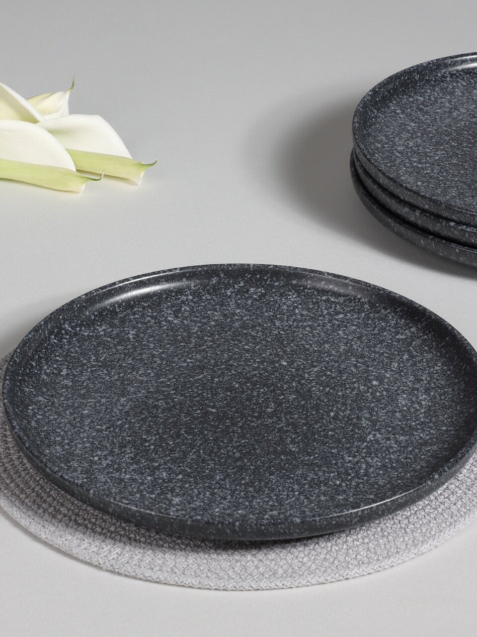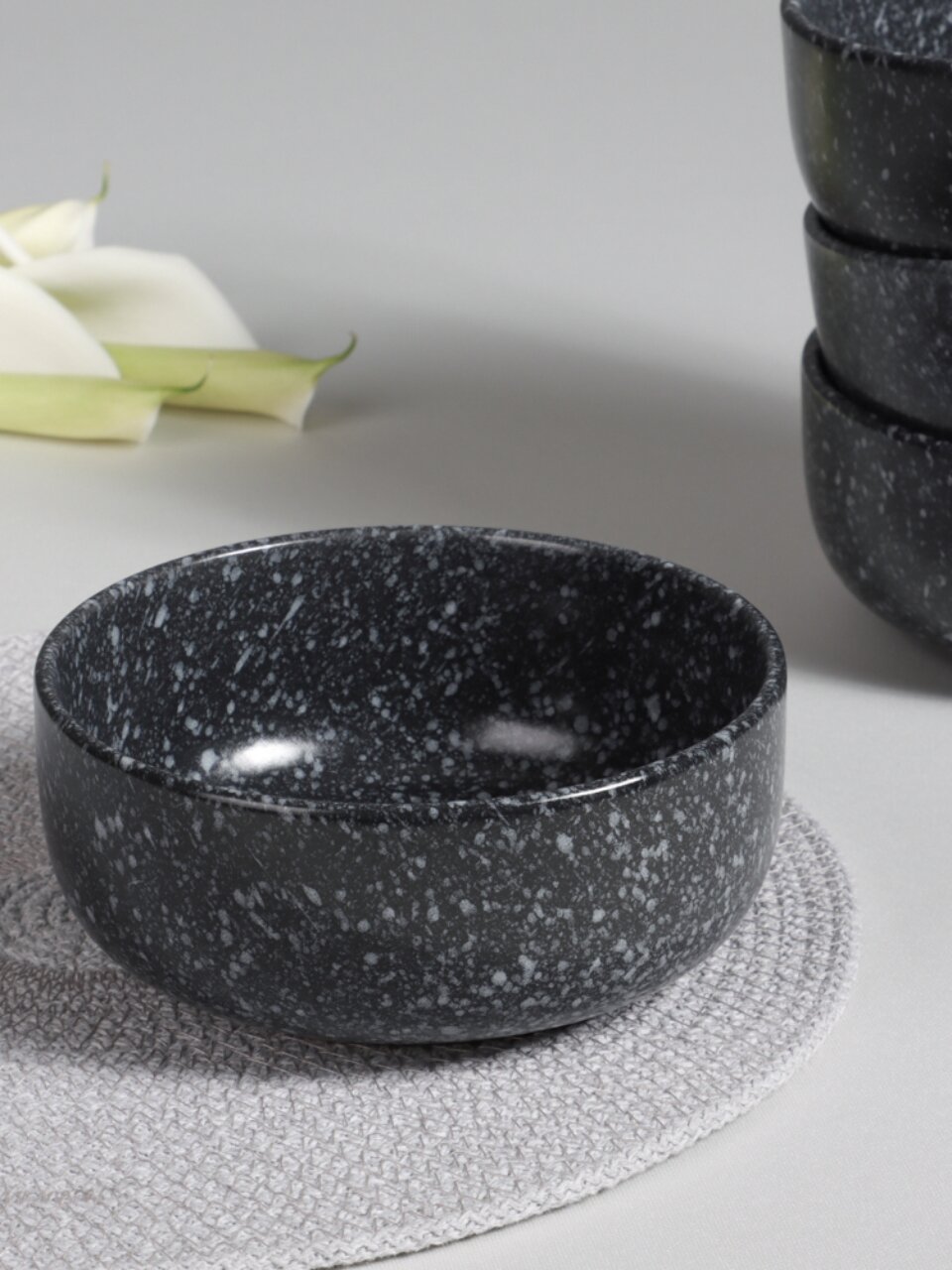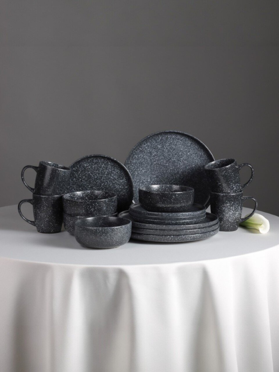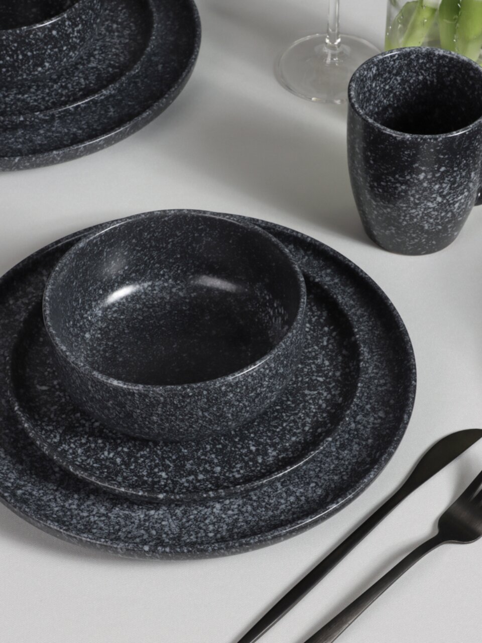 - Современный дизайн: черная керамика с крапинкой — тренд для стильной сервировки.