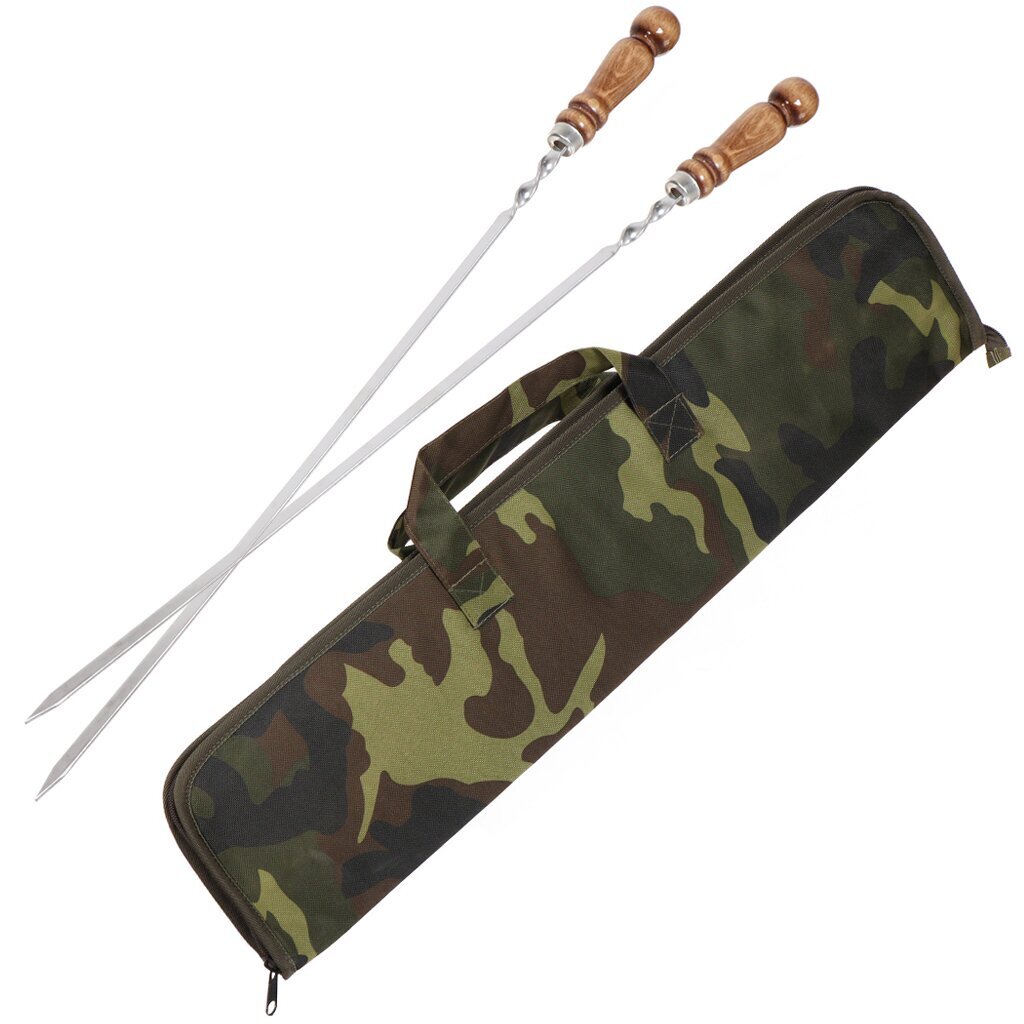 - Этот набор станет незаменимым помощником на пикнике, рыбалке или охоте. Он упакован в чехол, который защищает шампуры от повреждений и грязи.