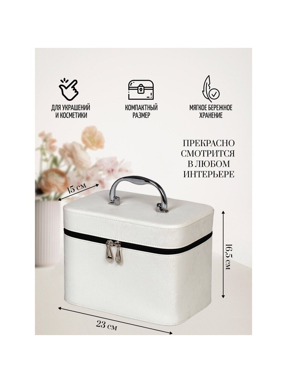 Шкатулка для хранения принадлежностей не оставит равнодушной ни одну любительницу изысканных вещей. С ней вы сможете внести в интерьер частичку элегантности. Данная модель выполнена из качественных материалов и станет оригинальным подарком.