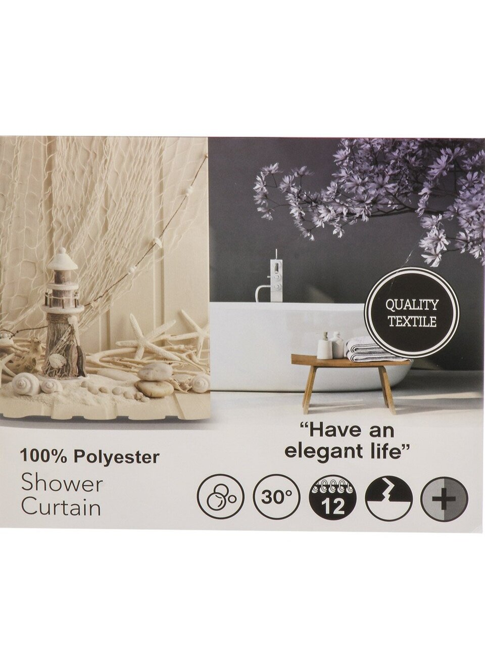 - универсальные размеры: 180х180 см, что делает штору подходящей для большинства стандартных ванных комнат;
