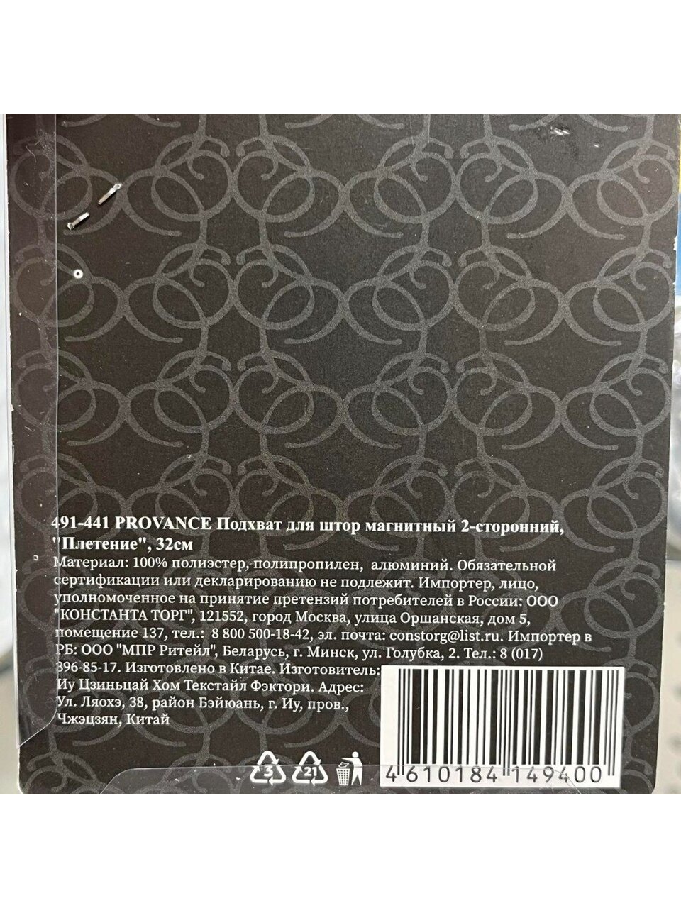 Вы можете приобрести «Подхват для штор 32 см, Provance, Плетение, в ассортименте, магнитный, 2 сторонний, 491-441» и другие товары в нашем интернет-магазине в Иваново по низким ценам и с бесплатным самовывозом.