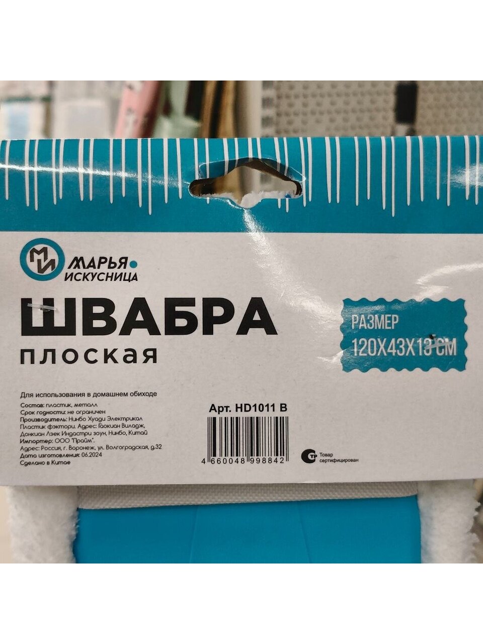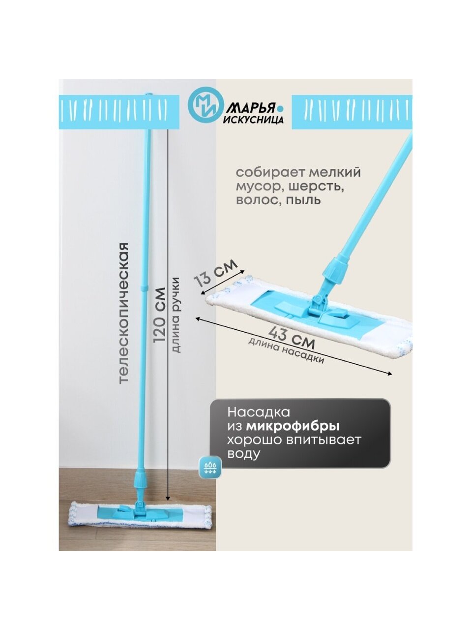 Вы можете приобрести «Швабра плоская, микрофибра, 120х43х13 см, белая, телескопическая ручка, Марья Искусница, HD1011 B» и другие товары в нашем интернет-магазине в Краснодаре по низким ценам и с бесплатным самовывозом.