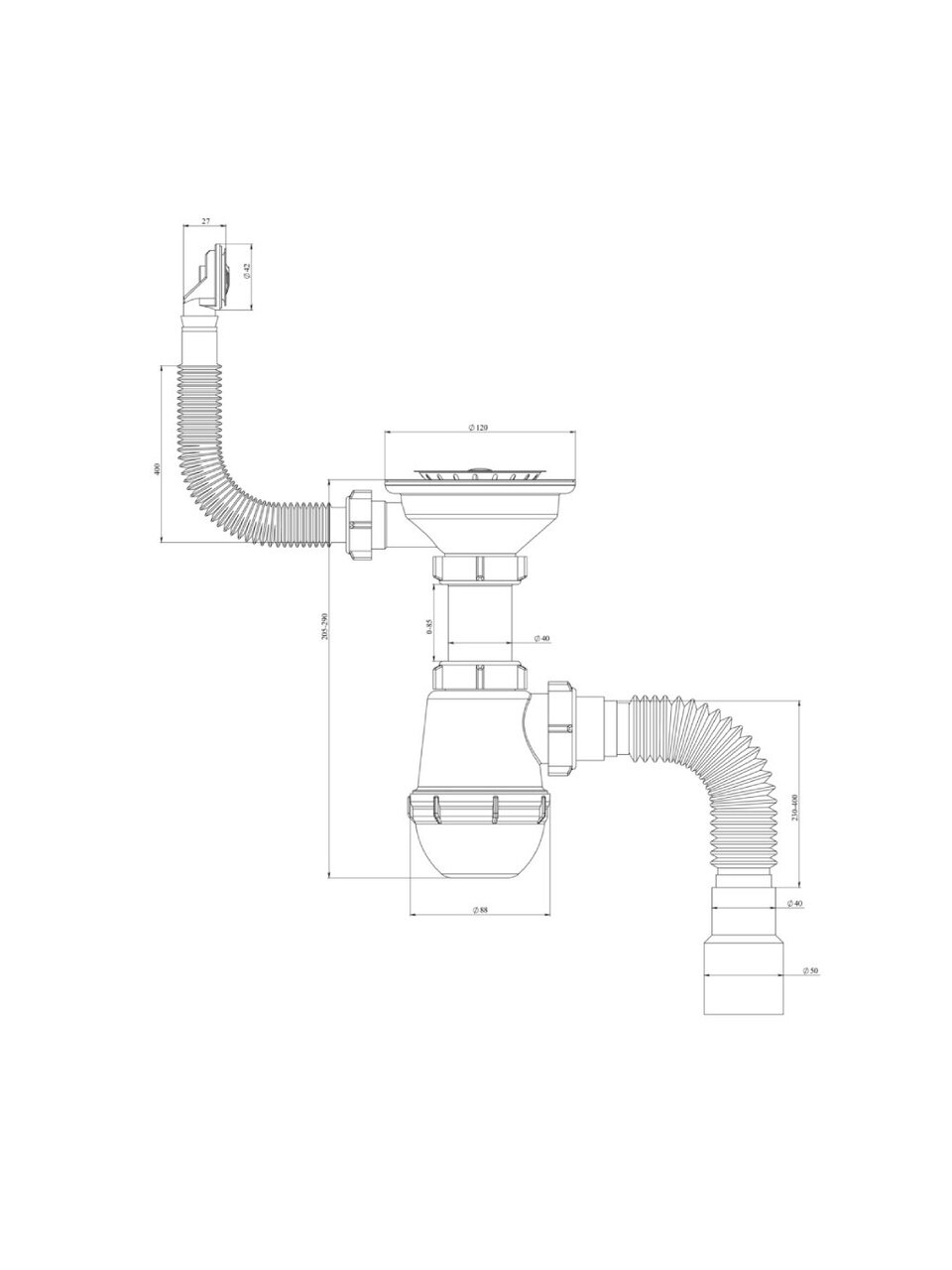 Сифон для мойки, круглый перелив, РМС, СЕМ-К