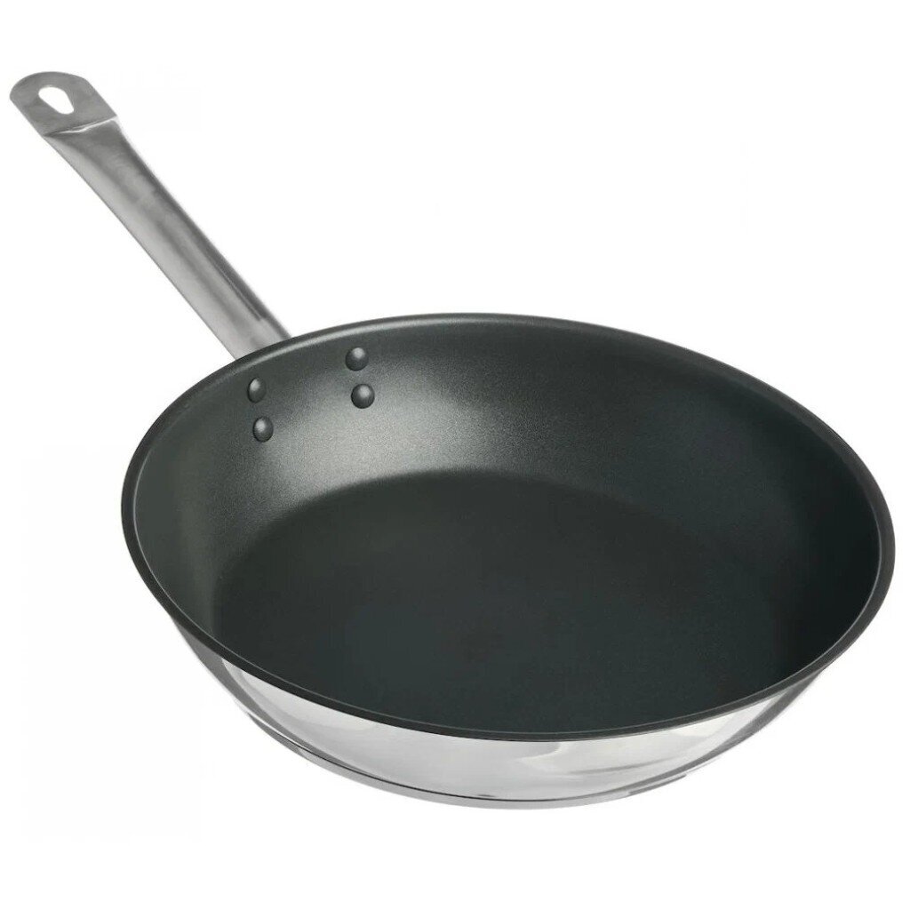 Сковорода из нержавеющей стали 30 см с антипригарным покрытием Xylan — идеальный выбор для индукционных плит, универсальна для жарки мяса, рыбы и омлетов.