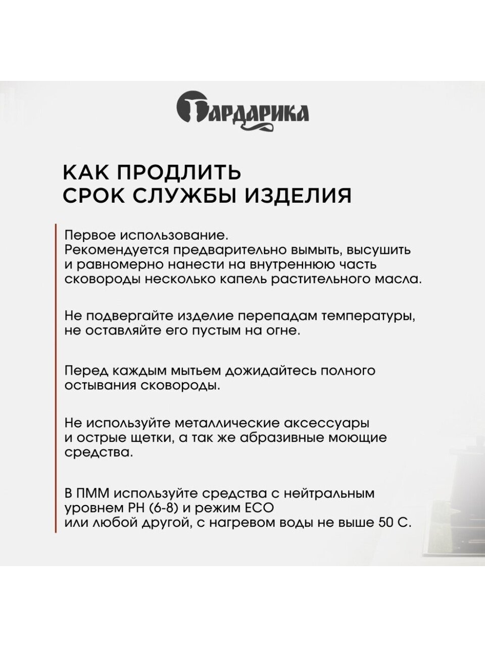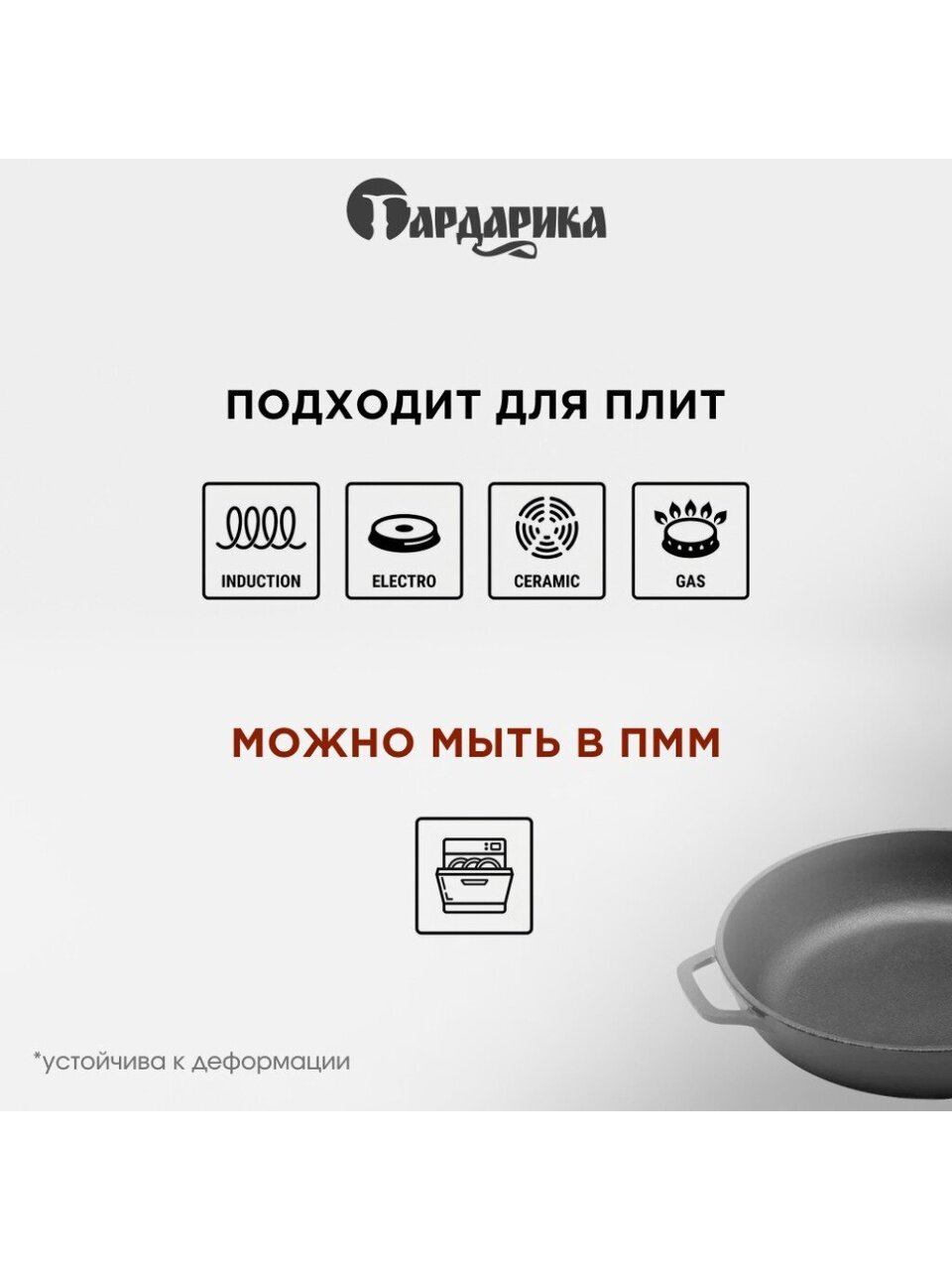 Оформите заказ на чугунную сковороду Гардарика 26 см — получите универсальный инструмент для кухни по выгодной цене с гарантией производителя 12 месяцев.