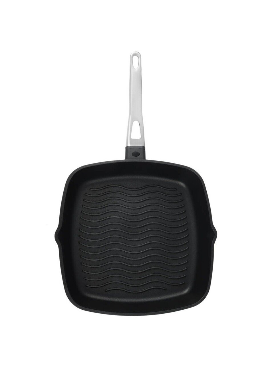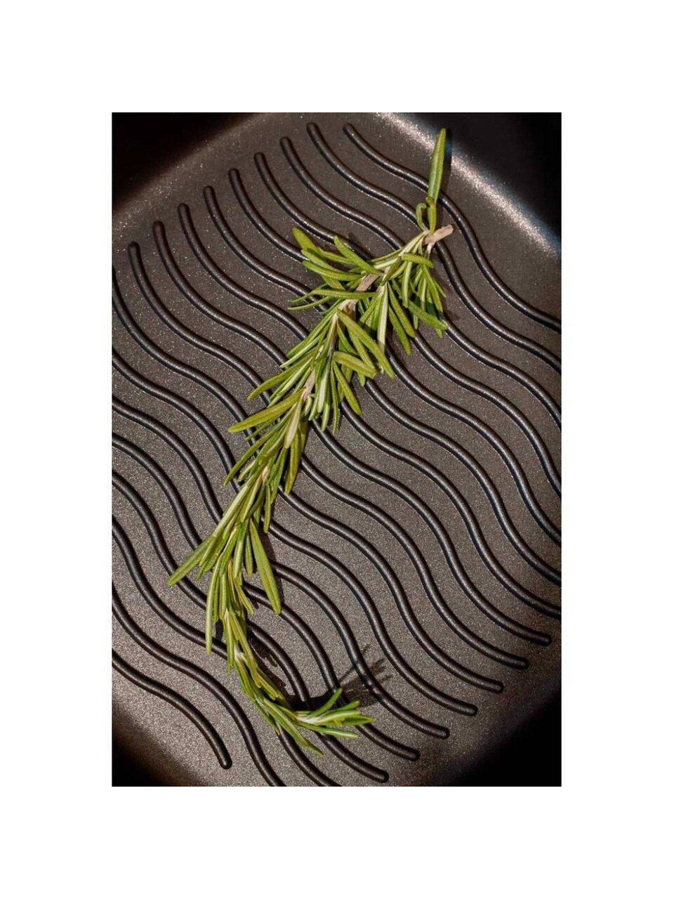 Квадратная форма 28 см позволяет разместить больше продуктов за один раз — удобно для семьи или гостей, а рифленое дно создает характерные полоски гриля.