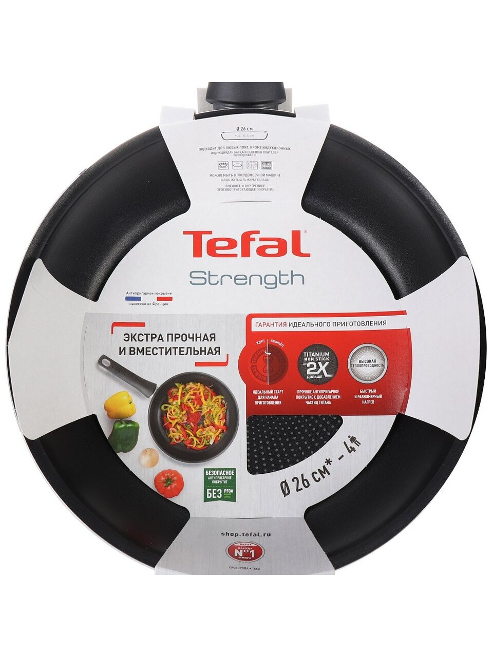 Сковорода Tefal Strength 26 см — антипригарное покрытие, прочный алюминий, 2 года гарантии. Для идеальной жарки дома и на даче без пригорания и хлопот.
