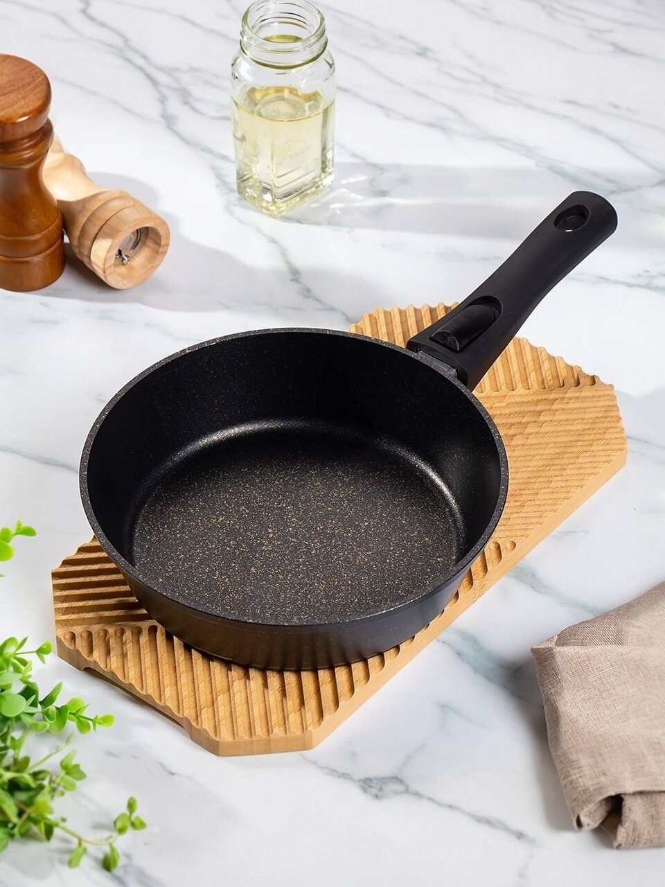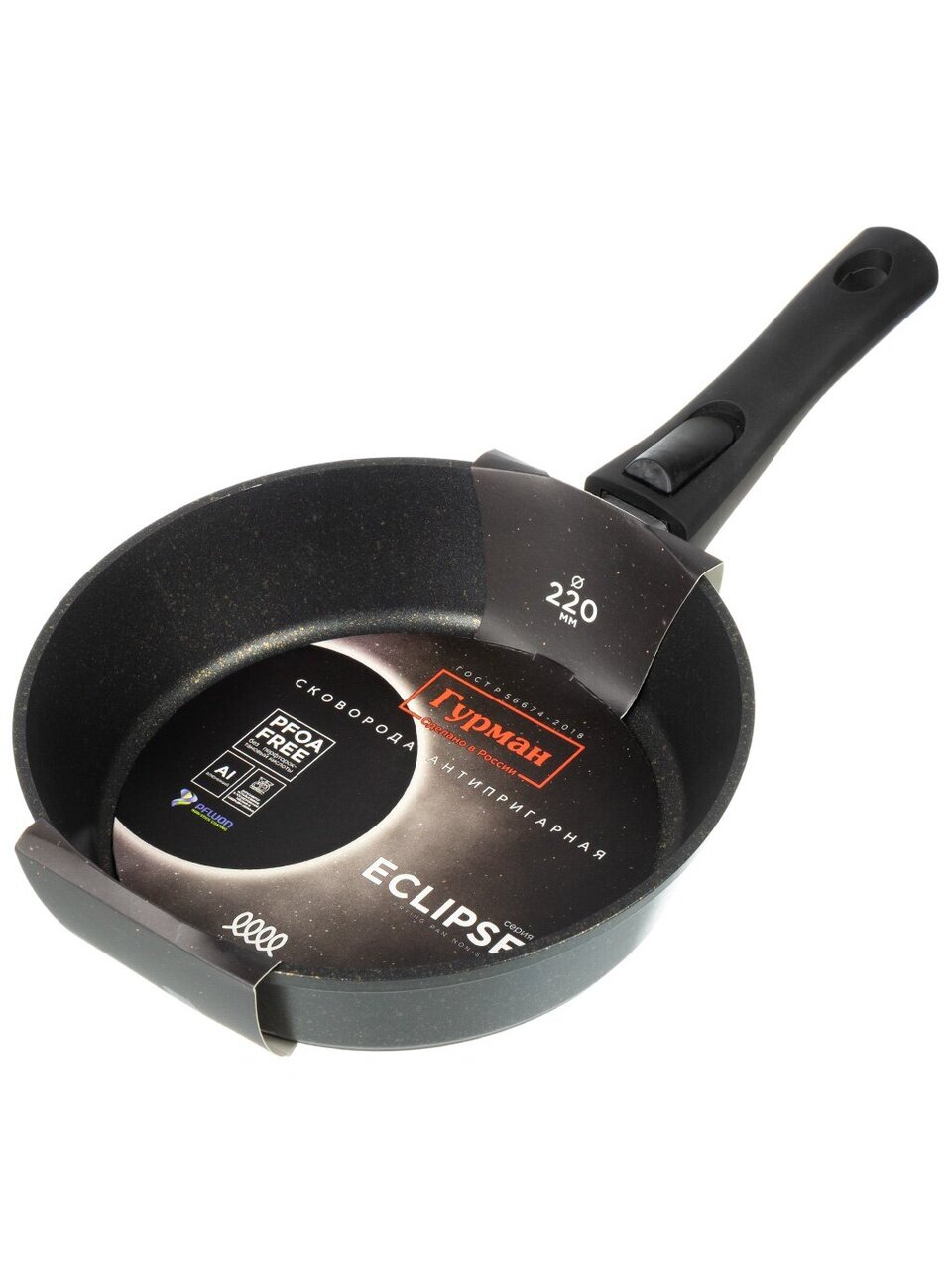 Сковорода литая алюминиевая 22 см Гурман Eclipse: гранитное антипригарное покрытие, съемная ручка, подходит для индукции — удобно, долговечно, выгодно.