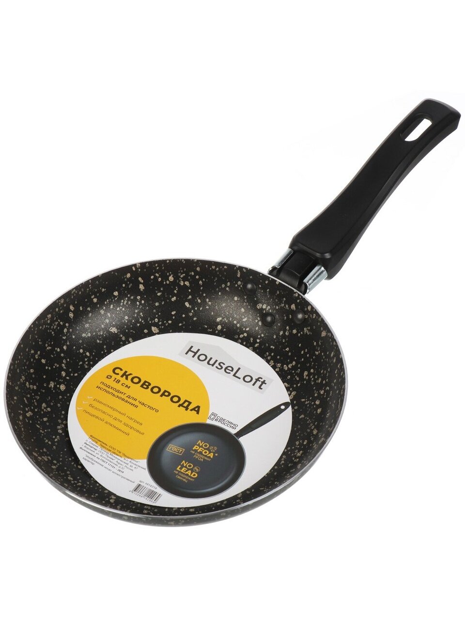Сковорода Vari HouseLoft 18 см: идеальный выбор для завтраков, антипригарное покрытие, легкий алюминий, стиль «черный гранит» — готовьте быстро и без пригорания.