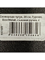 Диаметр — 28 см, диаметр дна — 23 см, высота борта — 4,5 мм, толщина дна — 4 мм, толщина стенок — 3 мм. Сковорода круглая, глубокая, без антипригарного покрытия, с деревянной съемной ручкой.