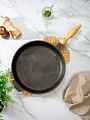 - Съемная деревянная ручка — удобно для хранения, использования в духовке и на открытом огне