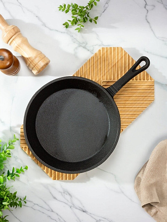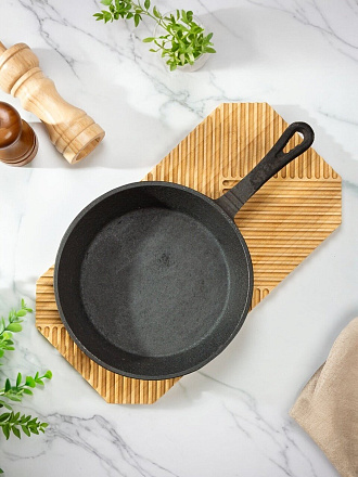 Чугунная сковорода DavrMetall 28 см — это выбор опытных кулинаров, которые ценят надежность, долговечность и универсальность. Благодаря толстому дну (4 мм) и стенкам (3 мм), сковорода быстро прогревается и долго удерживает тепло, что важно для идеальной прожарки мяса, рыбы, овощей или омлета. Съемная деревянная ручка облегчает хранение, а также позволяет использовать сковороду в духовке или на открытом огне, что особенно актуально для дачи.