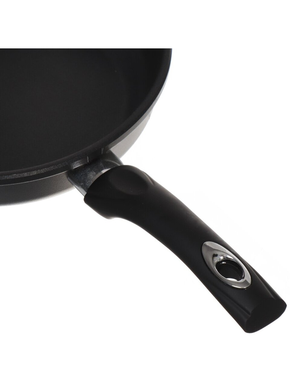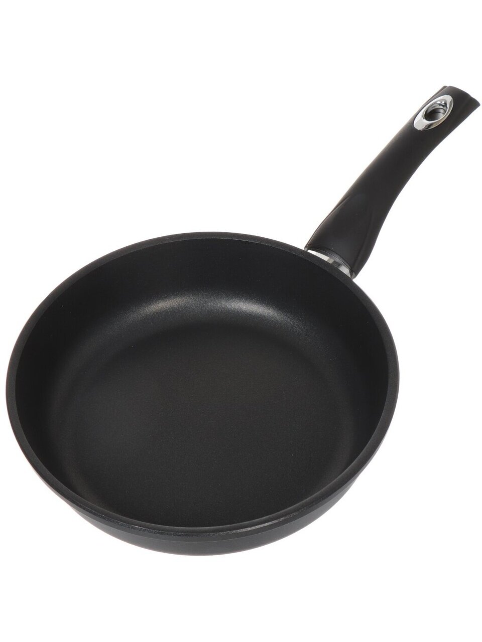 - Оптимальный диаметр 24 см, антипригарное покрытие, срок службы до 5 лет — удобно для жарки и тушения