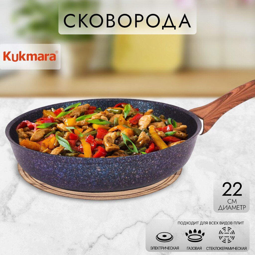 Сковорода Kukmara Granit Ultra 22 см — антипригарное решение для кухни: литой алюминий, алмазное покрытие, стильный синий, 3 года гарантии