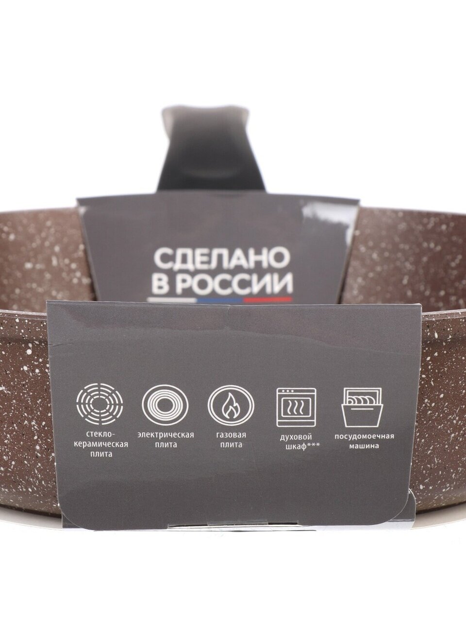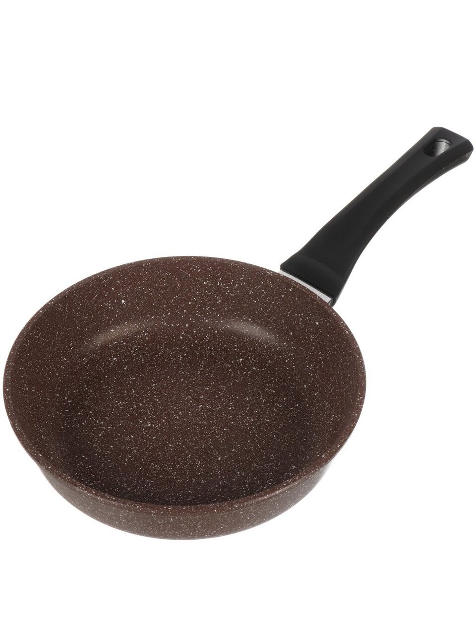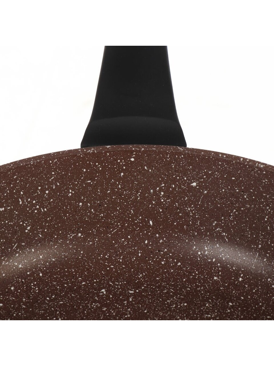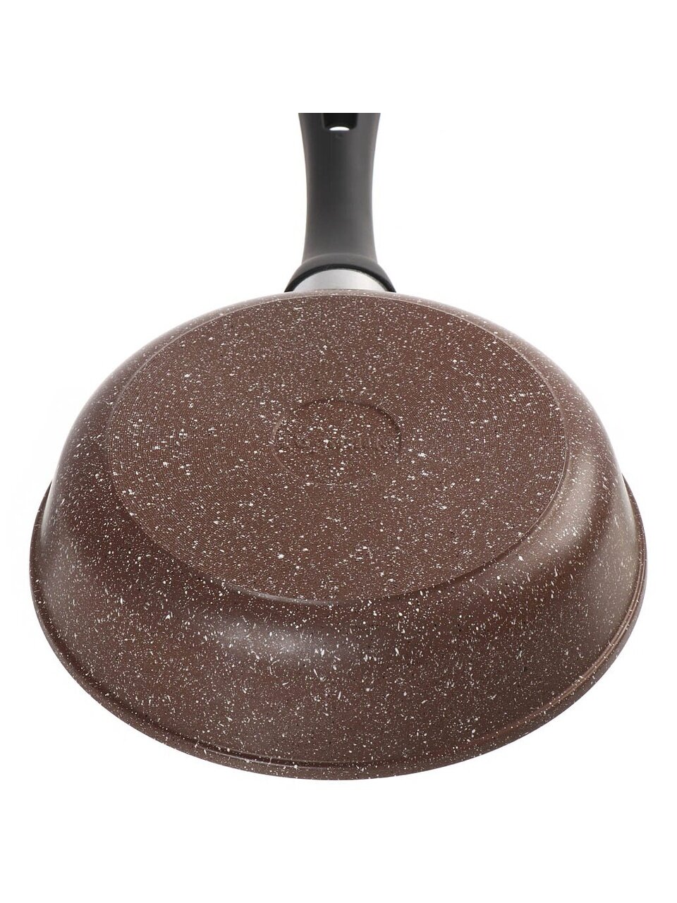 Сковорода Горница Шоколад 24 см — литой алюминий, мраморное антипригарное покрытие, 5 лет гарантии. Легко готовить без пригорания и мыть в посудомойке.
