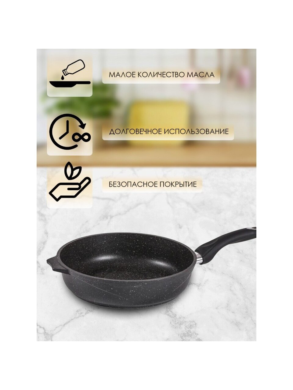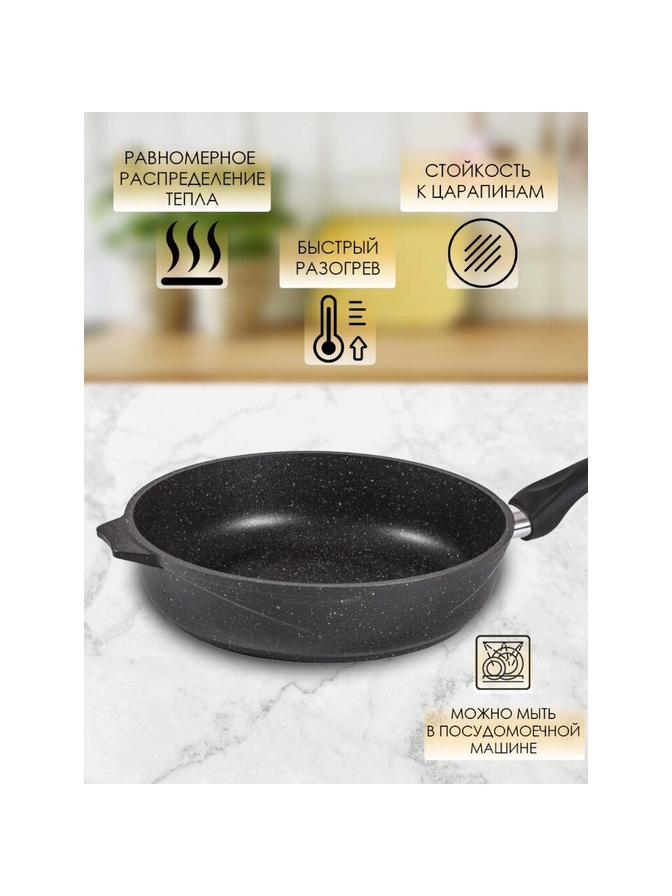 Сковорода Мечта Гранит black 26 см — идеальный выбор для жарки без прилипания, долговечность литого алюминия и гранитное антипригарное покрытие для кухни мечты.