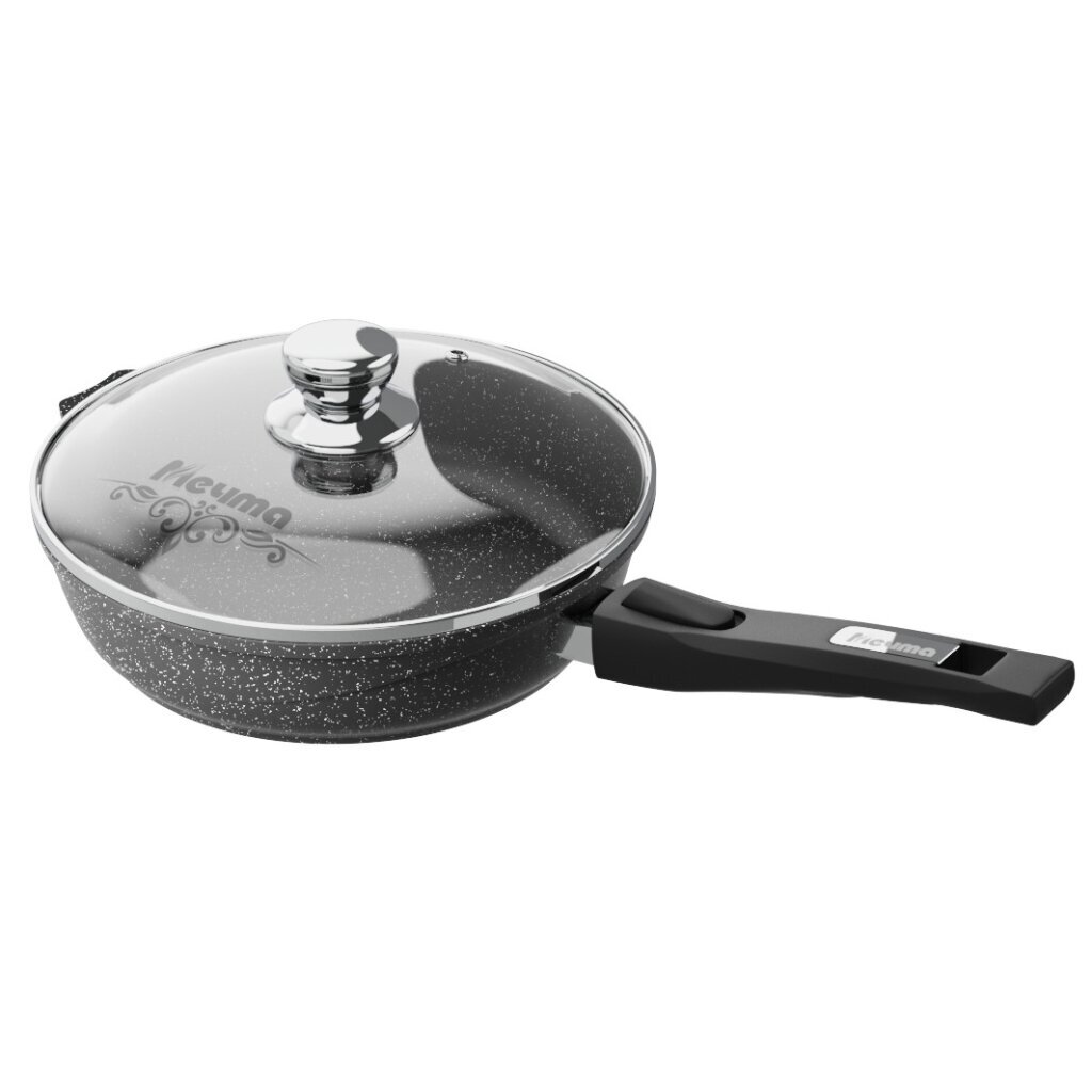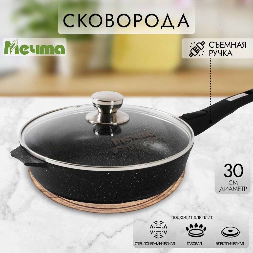 Сковорода литой алюминий, 30 см, антипригарное покрытие, Мечта, Гранит black, с крышкой, съемная ручка, с030802