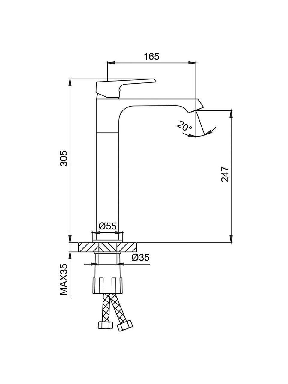 Для установки требуется одно отверстие диаметром 35 мм, стандартная подводка 1/2". Монтаж горизонтальный, крепление — гайка.