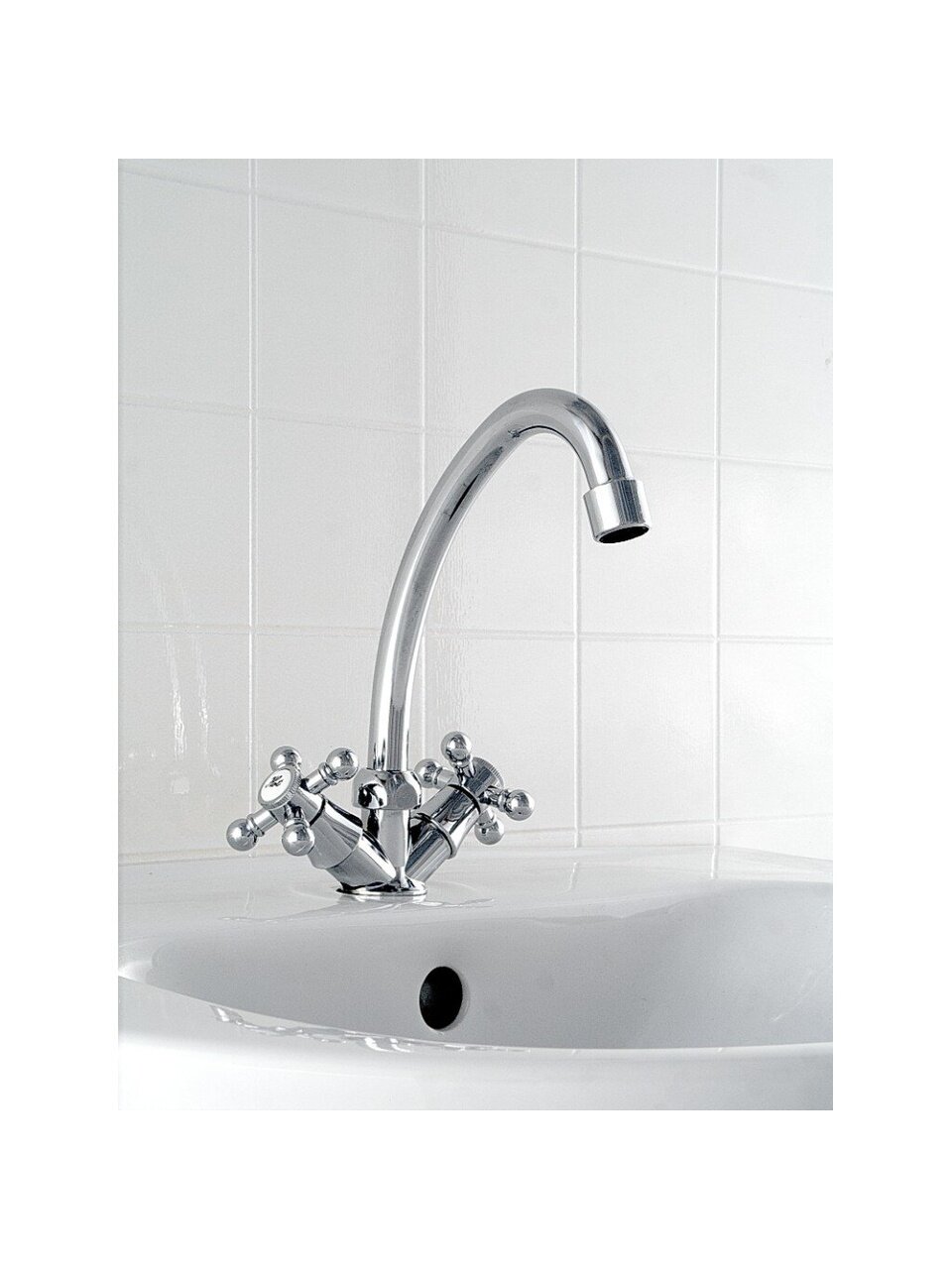 - Высокий средний излив (11,8 см) и универсальный классический стиль — удобно для кухни дома, на даче или в арендном жилье