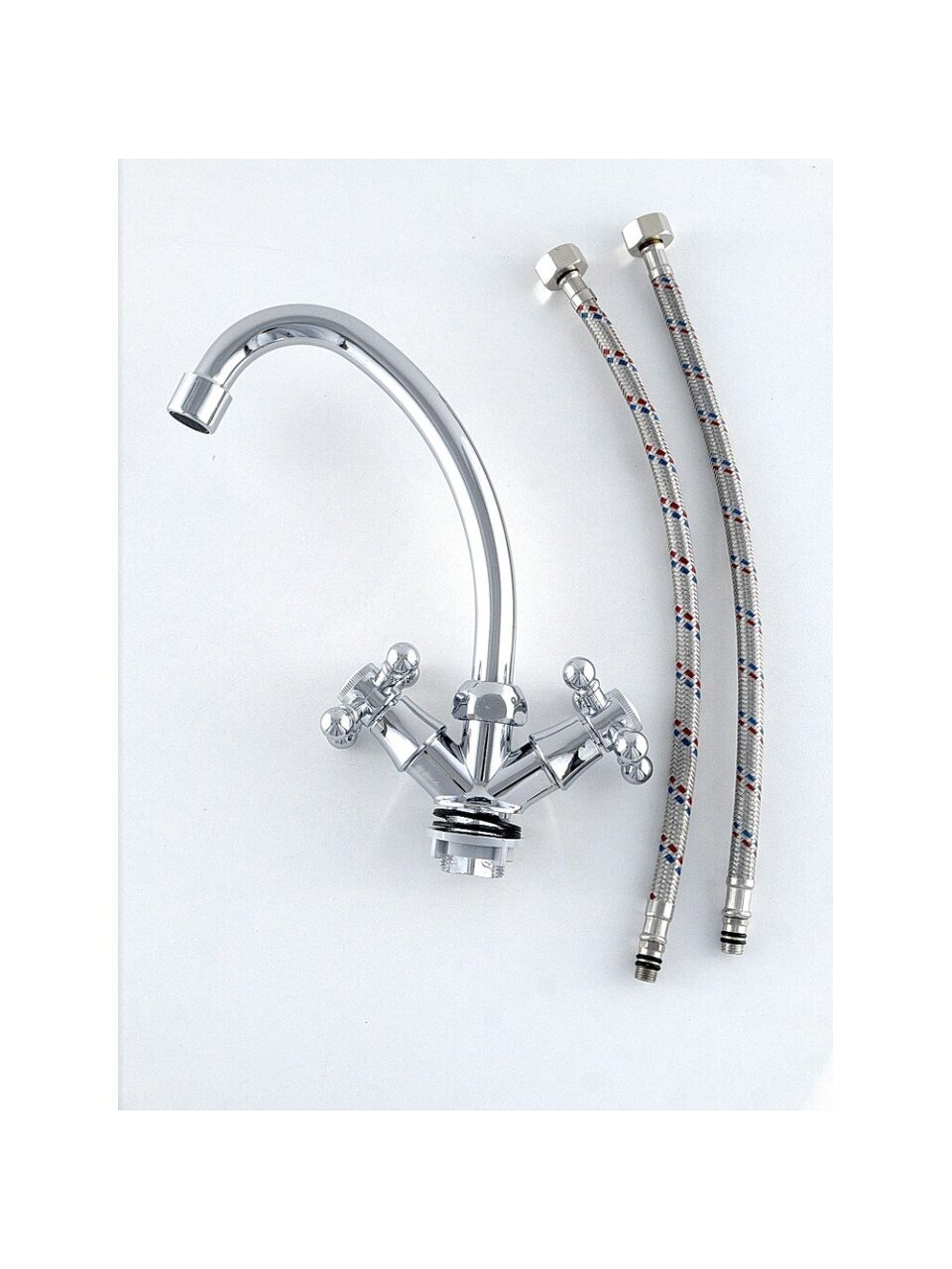 Ищете, какой смеситель выбрать для кухни с надёжным управлением и лёгким уходом? Cronwil CP333-49 — это двухвентильный смеситель с латунной кран-буксой и металлическим штоком 7х7/90°, который обеспечивает точную регулировку напора и температуры воды. Благодаря поворотному высокому изливу и глянцевой хромированной поверхности, модель отлично впишется в современный интерьер кухни или дачи.