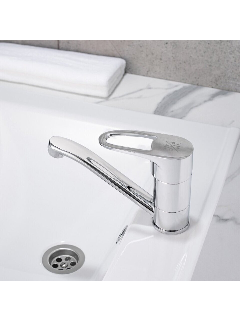 - Компактность и прочность: короткий излив 14,8 см, высота 7,7 см, корпус из цинкового сплава с керамическим картриджем для длительной службы.